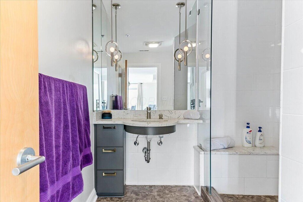 AVAILABLE NOW! Come explore all that Downtown Columbus has to offer! This updated 2bed 2bath condo in the Terraces on Grant has everything you are looking for. Chef designed kitchen that features stainless steel appliances,induction cooktop,pot filler,floor to ceiling soft close cabinets and a separate beverage refrigerator! Both full bathrooms have been updated with glass walk in showers and rainfall shower heads. The bedrooms have walk-in closets and plenty of space to keep everything organized! The convenience of a dedicated in-unit laundry room with additional counter space and storage. Enjoy all the natural light from floor to ceiling windows and private balcony. For peace of mind,all mechanics have been updated within the past 7 years. The building has an updated security system,your own dedicated parking spot off E Walnut Street with your own garage remote,and secured package delivery area. As a resident of the building,you have access to the fitness facility and shared rooftop patio with amazing city views! Terraces on Grant is located near the Topiary Park,Columbus Commons,Scioto Mile,German Village,Short North,Columbus Convention Center,and North and East Market! Schedule your showing today! You will not want to miss out on this amazing condo! NO PETS,NO SMOKING OF ANY KIND. Security Deposit is $2500.