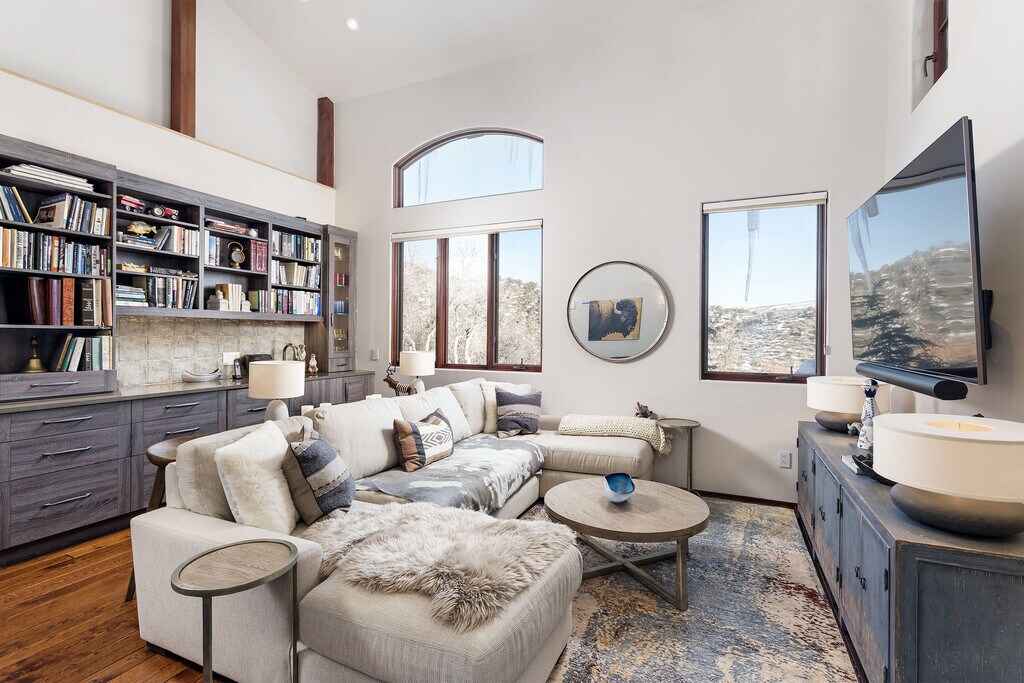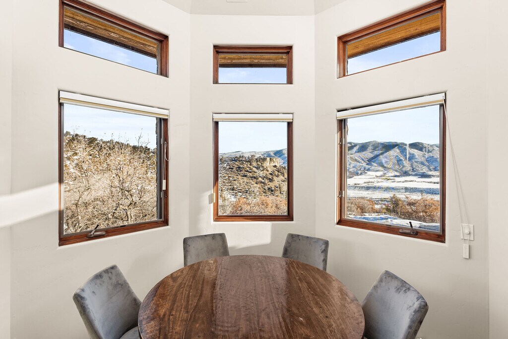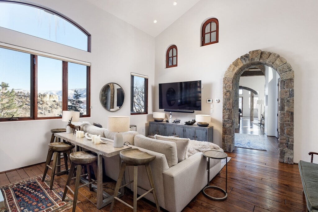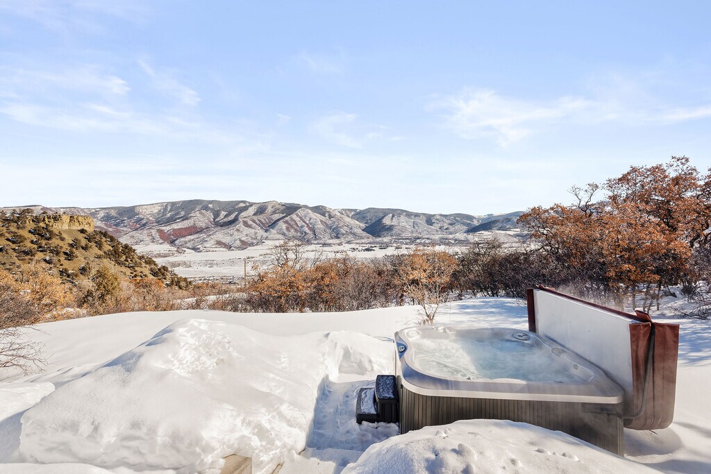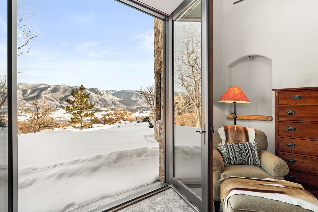 This stunning home with breathtaking views is situated on 2 private acres with expansive views of the Roaring Fork Valley, across to Woody Creek, Starwood and McClain Flats. Perfectly situated high up in Brush Creek Village, 14 minutes to Aspen and 8 minutes to Snowmass Village and Buttermilk, this spacious home boasts an open floor plan with marvelous vaulted ceilings, beamery, wood floors, and massive stone arches. It has a large well-equipped kitchen, with Subzero and Wolf appliances, two dishwashers, warming drawers, spacious pantry, and includes an adjacent breakfast nook with 270 degrees of views. There is a large TV, so the chefs of the house do not miss the game. A grand dining room is beside two bars surrounding the kitchen, that all opens up onto one of several large patios, the main one with gas and charcoal barbeques. The main living room has a beautifully crafted double-sided gas fireplace, which opens to a private patio for entertaining outside on warmer days. The front French doors open to big views and a perfectly situated hot tub to soak under the stars. A large separate family living room is equipped with its own wet bar, ice maker, fridge, and a super large Sony TV with surround sound for movie night – and subscriptions to all the great programming. The home is equipped with awesome sound and lighting systems that can be run on your smart phone. Apple TV’s and Direct TV in 6 TV’s. A powder room sits beside a grand entryway that opens out into another patio with the fireplace. The master suite has its own stone fireplace and a large flat screen TV, and boasts floor to ceiling windows. If you want to spend time outside, there are two sets of French doors that open onto a private wraparound deck. The master bath comes with large steam shower and deep tub, beside an enormous walk-in closet with two sides. The master wing also has a laundry room and private office. Two guest rooms on the main level offer queen beds and share a Jack and Jill bath. Each guest room offers outdoor decks. Upstairs is a separate king suite with a sitting area, and en suite bath. A game room nook with poker table, TV, and big views is also upstairs. Plenty of parking for vehicles suited for winter driving. The Guest House can be rented with the Main or separately and features elegant contemporary furnishings with breathtaking views situated near the main house with the same amazing views. Featuring a main floor bedroom, bath, dining area, kitchen, and living area with an upstairs loft space. Enjoy quiet solitude in your own private space. The Guest House can be rented separately for STR.0076.2023
