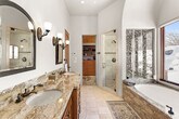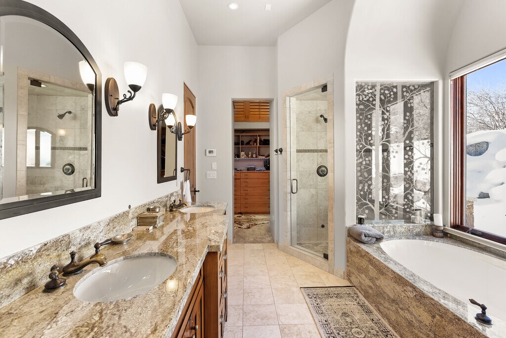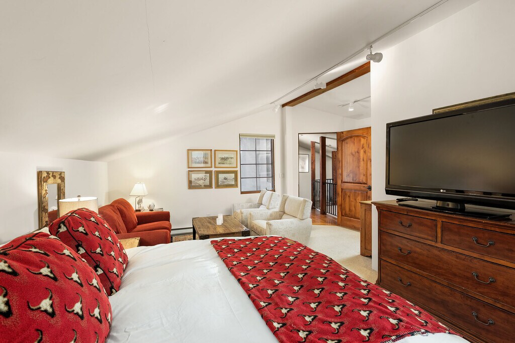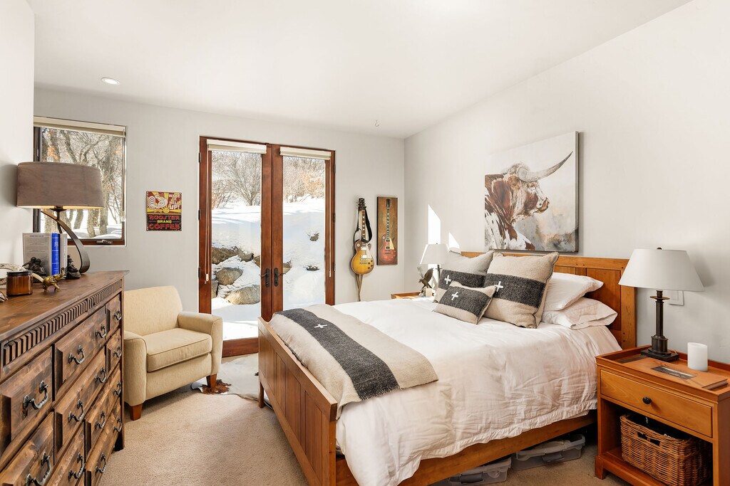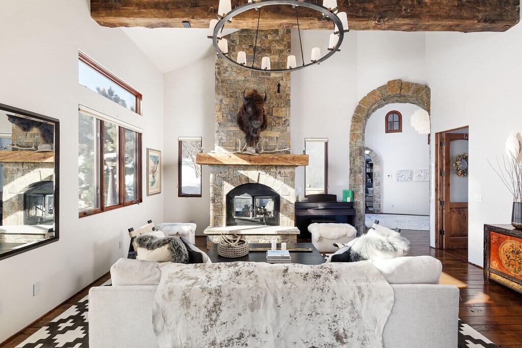 This stunning home with breathtaking views is situated on 2 private acres with expansive views of the Roaring Fork Valley, across to Woody Creek, Starwood and McClain Flats. Perfectly situated high up in Brush Creek Village, 14 minutes to Aspen and 8 minutes to Snowmass Village and Buttermilk, this spacious home boasts an open floor plan with marvelous vaulted ceilings, beamery, wood floors, and massive stone arches. It has a large well-equipped kitchen, with Subzero and Wolf appliances, two dishwashers, warming drawers, spacious pantry, and includes an adjacent breakfast nook with 270 degrees of views. There is a large TV, so the chefs of the house do not miss the game. A grand dining room is beside two bars surrounding the kitchen, that all opens up onto one of several large patios, the main one with gas and charcoal barbeques. The main living room has a beautifully crafted double-sided gas fireplace, which opens to a private patio for entertaining outside on warmer days. The front French doors open to big views and a perfectly situated hot tub to soak under the stars. A large separate family living room is equipped with its own wet bar, ice maker, fridge, and a super large Sony TV with surround sound for movie night – and subscriptions to all the great programming. The home is equipped with awesome sound and lighting systems that can be run on your smart phone. Apple TV’s and Direct TV in 6 TV’s. A powder room sits beside a grand entryway that opens out into another patio with the fireplace. The master suite has its own stone fireplace and a large flat screen TV, and boasts floor to ceiling windows. If you want to spend time outside, there are two sets of French doors that open onto a private wraparound deck. The master bath comes with large steam shower and deep tub, beside an enormous walk-in closet with two sides. The master wing also has a laundry room and private office. Two guest rooms on the main level offer queen beds and share a Jack and Jill bath. Each guest room offers outdoor decks. Upstairs is a separate king suite with a sitting area, and en suite bath. A game room nook with poker table, TV, and big views is also upstairs. Plenty of parking for vehicles suited for winter driving. The Guest House can be rented with the Main or separately and features elegant contemporary furnishings with breathtaking views situated near the main house with the same amazing views. Featuring a main floor bedroom, bath, dining area, kitchen, and living area with an upstairs loft space. Enjoy quiet solitude in your own private space. The Guest House can be rented separately for STR.0076.2023