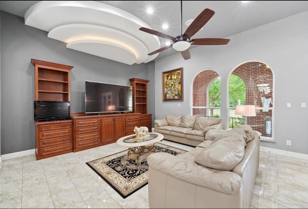 -Beautiful, Luxurious Fully furnished custom built home (4 Bedroom 2.5 Bathroom, 3 car garages) In Humble With Great Amenities is now . -It is located in a safe and quiet cul-de-sac neighborhood with awesome view of the golf course from all the rooms and bedrooms. -Elegant stone look high gloss porcelain title throughout home with at least 12 foot ceilings throughout. Each room has special and unique ceiling treatments, some with accent lighting. Entire home entertains you with over 20 built-in speakers in the ceiling for your daily music/radio enjoyment like a dream home. - A study room can be used as an office or bedroom which come with a closet, an incredible artistic ceiling treatment with built-in speakers. - A private media room with new Smart Samsung LED TV also with artistic ceiling treatment with built-in speakers. - A formal dinning room is open to the oversized family room with a built in entertainment center and speakers mounted in the ceiling - Kitchen with custom built cabinets, commercial grade stainless steel appliances and granite counters and backsplash. - Private owner retreat with en-suite bath with luxurious walk in shower with dual heads and body sprays. - Entire house has automatic roll up metal hurricane shutters. Huge covered private rear patio with fireplace and built-in outdoor kitchen. Lease: 1 year or more Short term lease, insurance claim or corporate housing is available.