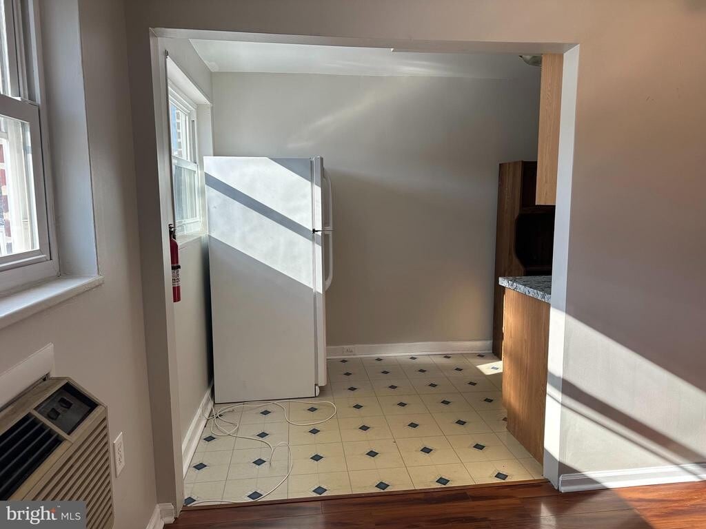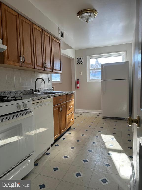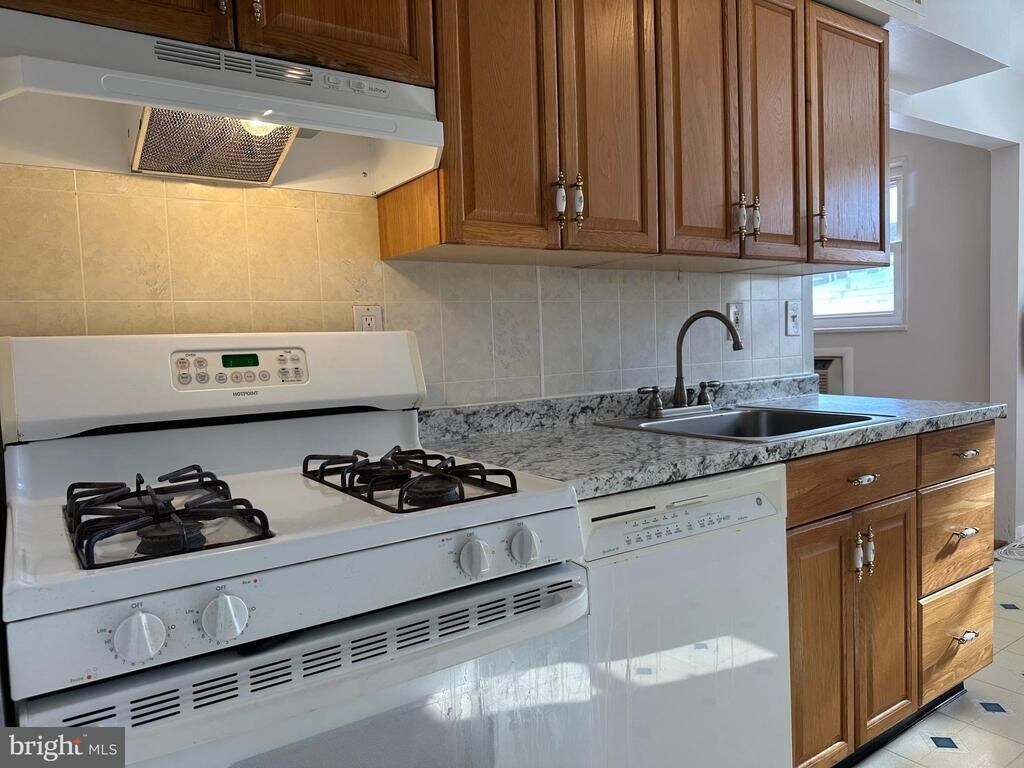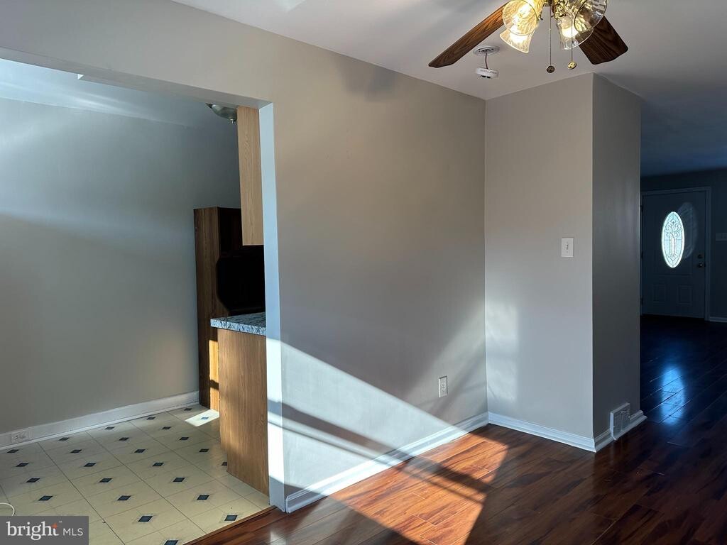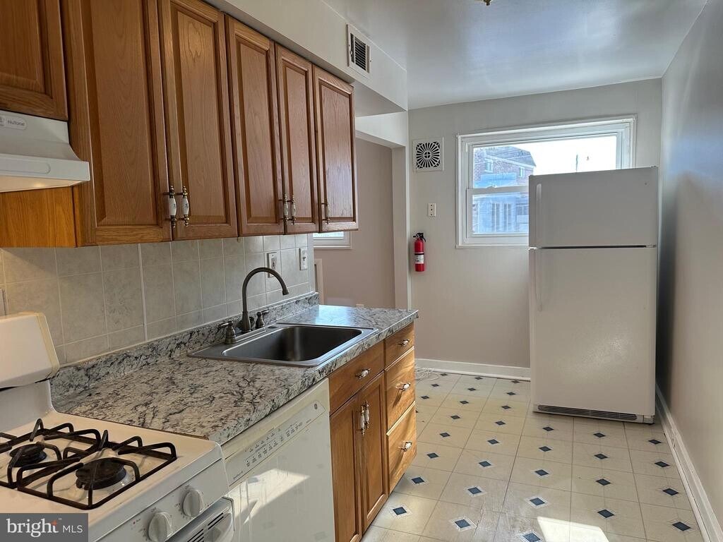 Clean, move-in ready 3 bedroom home with hardwood floors and private off-street parking. Central air, basement storage, and garage included. Available now for $1,950 per month plus utilities. Well-maintained 3 bedroom, 1 bath brick rowhome available for immediate occupancy. Offering a practical layout, private parking, and a convenient location, this home delivers comfortable everyday living in an established neighborhood. The main level features hardwood flooring in the bright living and dining areas. The kitchen includes a new countertop, gas range, dishwasher, full-size refrigerator, and generous cabinet space. Upstairs are three bedrooms and a full bath with tiled flooring, tiled tub surround, and a skylight that brings in natural light. The primary bedroom offers hardwood flooring and a large closet, while the additional bedrooms provide flexible space for guests or a home office. Ceiling fans are installed in the bedrooms and dining area. The partially finished basement adds usable bonus space and includes a washer and dryer, storage, and interior access to the one-car garage. A private driveway provides additional off-street parking. Additional features include gas heat, central air conditioning, fresh paint, and close proximity to shopping, public transportation, and major roadways. Dogs considered on a case-by-case basis for an additional monthly fee. Move-in ready and available now.