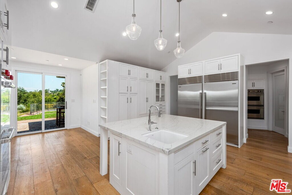 Fully gated south of the boulevard compound. Enter through the private gated entrance and follow the long drive to the landing of your property. Custom-built with the modern family in mind, the house features 6 bedrooms plus a bonus room (almost 400 sq feet) that can serve as a home office, gym, or 7th bedroom.The living wing comprises 3 bedrooms, each with an ensuite bathroom, connected by a central playroom. An additional bedroom is located upstairs, adjacent to the playroom. The primary suite offers all the comforts one would expect, including a TOTO toilet, two primary closets, and a steam shower. The playroom provides direct access to the backyard, which features a terraced vegetable garden and fruit trees (lemon, orange, apricot, apple, clementine, fig).Additional features include a fully automated exterior watering system, abundant storage, two extra refrigerator-freezers in the garage, three wine refrigerators in the California basement, two Viking double ovens, two Wolf double ovens, a Sub-Zero 36 refrigerator, and a 36" freezer. The home is equipped with Lutron automation for interior and exterior landscape lighting and air conditioning, three tankless water heaters, and five zones of air conditioning. There is also a Tesla charging station. The property comes with weekly gardening and pool service provided by a professional service, and private housekeeping services are available" MLS# 26649175