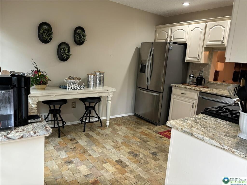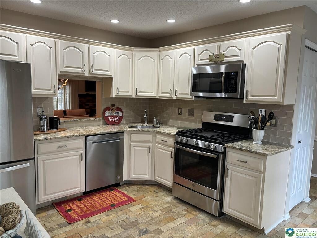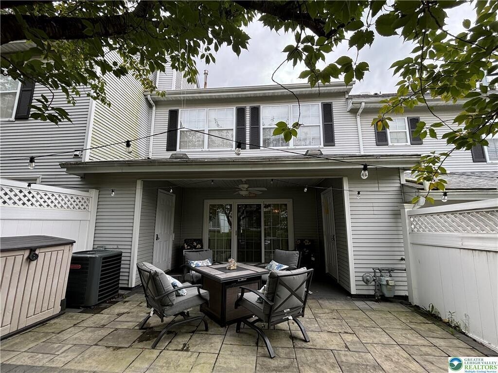 Society Hill townhouse for rent! Come and see this well appointed and beautifully updated 3 bedroom, 2.5 bath townhome. The main level features a large eat-in kitchen with timeless white cabinets, granite counters, and a stainless steel appliance package. A bright and spacious sunken living room and dining room combination with a gas fireplace. Across the entire back is a covered paver patio that extends to an open air patio with 2 storage closets. Upstairs, you'll find the primary bedroom with double closets and en suite bath! Along with 2nd and 3rd bedrooms, laundry and hall bath. Beautiful engineered hardwoods flow throughout this spacious floor plan. Walk to Main Street Hellertown shops and restaurants. Hop on the rail trail or spend time sitting by the neighborhood's pool! This splendid community offers convenience of location and lifestyle. All outside maintenance taken care of and close to Route 78, 309, Promenade Shops and Lehigh Univ. Saucon Valley Schools - No pets and no smoking, please! Tenant is responsible for Electric and Gas (monthly) and Water/Sewer (quarterly) Choice of Astound or Service Electric for internet. HOA fee is paid by Landlord.