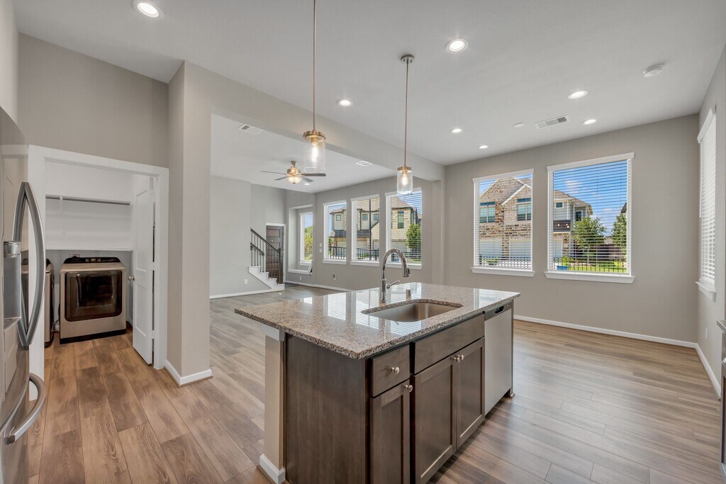 Welcome to this stunning 2-story townhome in the coveted Bridgeland community! Nestled on a prime corner lot w/no neighbors across the street,this home boasts breathtaking landscape & serene lake views. The interior features elegant LVP flooring throughout the main level & plush carpet upstairs. The heart of the home is the open-concept kitchen,showcasing a sleek island w/granite countertops,stainless steel appliances,& abundant cabinetry. The primary suite is a true retreat w/its spa-like ensuite bathroom,complete w/dual sinks,a spacious walk-in shower,& a generous walk-in closet. Upstairs,you'll find two additional bedrooms,a full bathroom,& a versatile game room perfect for family fun. Enjoy outdoor living in the expansive backyard. Bridgeland offers an array of amenities,including multiple pools,splash pads,walking trails,playgrounds & tennis courts. Conveniently located near top-rated schools,dining,& shopping options. Appliances included! MLS# 19791144
