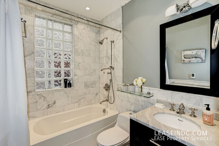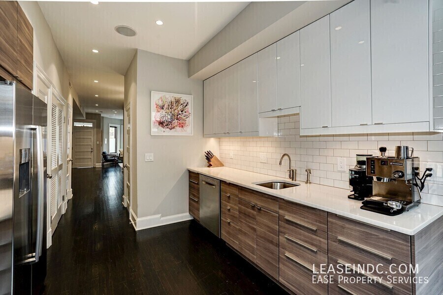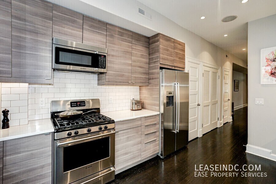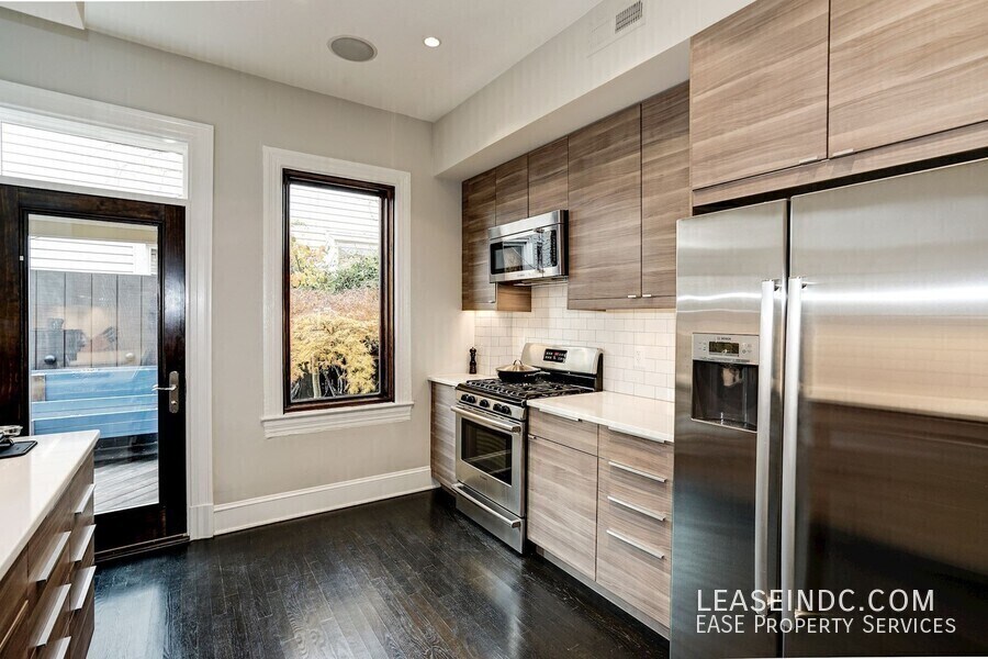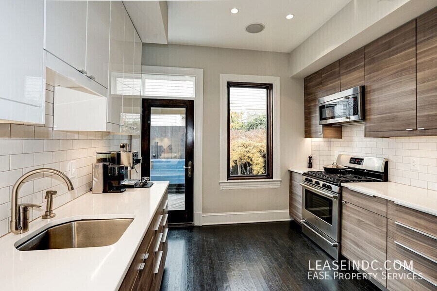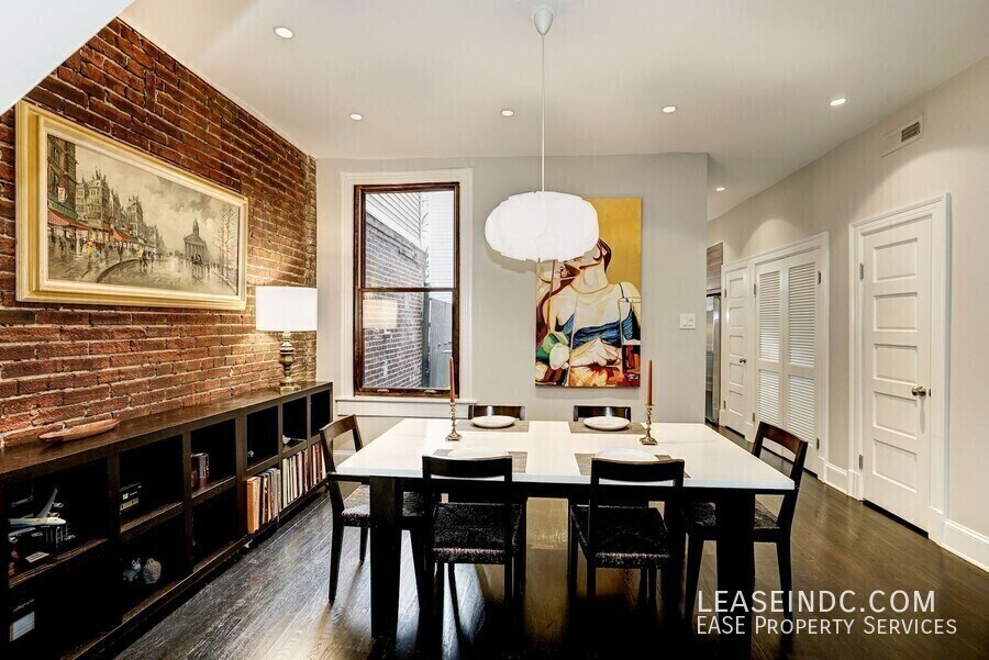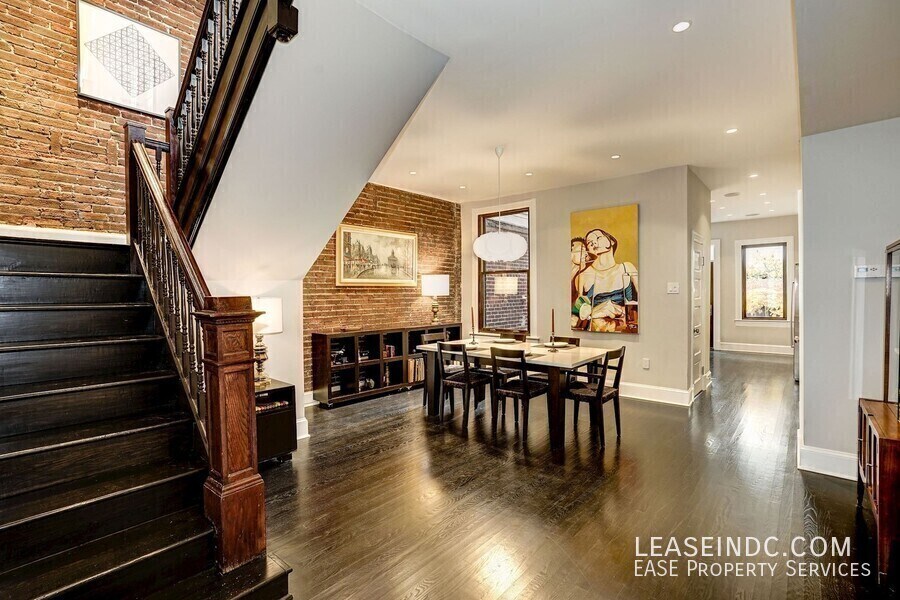 Stunning three-level end-unit rowhome in the heart of LeDroit Park! Welcome to 1964 2nd Street NW. Completely renovated from top to bottom, this home blends classic neighborhood charm with sleek, modern design and is ready for your personal touch. Highlights include a designer kitchen, a luxurious primary suite, and an incredible private rooftop deck perfect for relaxing or entertaining. Spanning three fully finished levels of thoughtfully designed living space, this home truly stands out. Home Features: Beautiful dark hardwood flooring and exposed brick throughout Tons of storage room with multiple Elfa closets Living room with custom translucent glass window treatments for privacy High end Polk speakers wired throughout home (tenant would need to set up their own receiver) Spacious dining room area past living room Gourmet kitchen with stainless steel appliances, quartz countertops and custom cabinetry Deck off of kitchen, perfect for barbecuing and entertaining Second level leads to three good sized bedrooms Full bathroom in hallway with high-end finishes and heated floors Primary suite occupies the entire third floor and features a skylight and a massive closet with translucent ceiling made of Kel-Wall insulated fiberglass Spa-like ensuite primary bathroom with walk-in shower Large rooftop deck with heaters so you can enjoy it year round Washer/Dryer in unit Parking: Street parking. Utilities: Tenants are responsible for gas, water and electric. Lease Terms: Available April 7th. Minimum 12 month lease. Application fee is $35 and includes a credit check. Security deposit equal to one month's rent due upon lease signing. Pets considered on a case-by-case basis with a $50/month pet fee (per pet) and pending approval by Owner. Location: LeDroit Park is a neighborhood that is rich in history with beautiful homes along tree-lined streets. It's close to everything but secluded enough for privacy. Near public transportation and an easy commute to Downtown DC. Easy walking distance to Bloomingdale, U Street Corridor, Eebee's Corner Bar, Big Bear Cafe, Bloomingdale Farmer's Market, and much more.