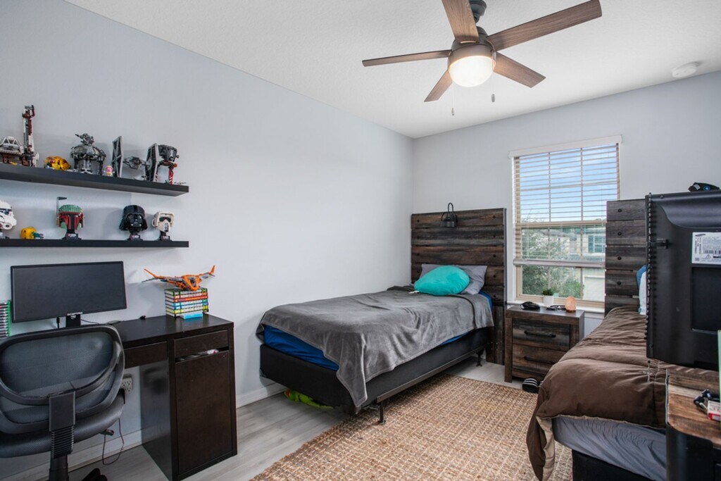 What a great 4 bdrm, 2-1/2 bath home this is with the view of the pond in your backyard! NO CARPET anywhere and built in 2017! This is a 2 story home and ALL bedrooms are upstairs! 2 full baths upstairs plus 1/2 bath downstairs for guest! This is a great home in a quiet and gated neighborhood with the community pool right next door for sun and fun! Kitchen has beautiful granite counters and plenty of cabinets! This home comes with lots of room to cook and entertain downstairs and privacy is upstairs for rest and relaxation :) PET is subject to landlord approval