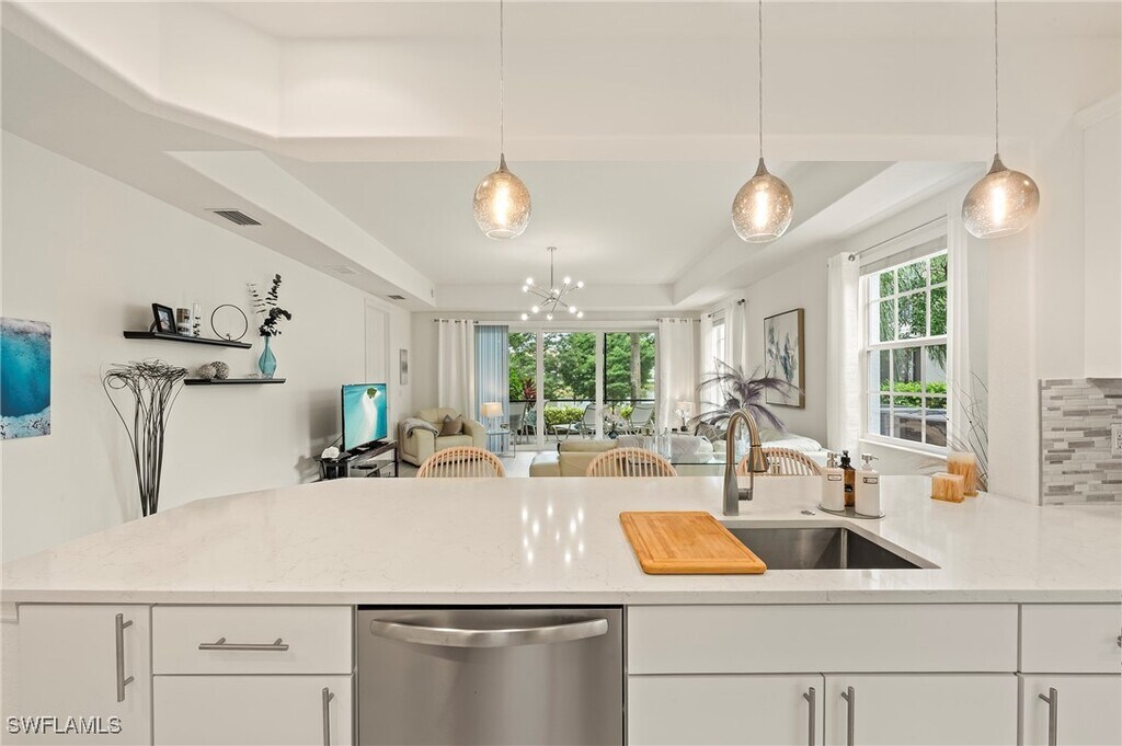 FURNISHED RENTAL AVAILABLE DECEMBER 2025 and April 2026 for $7,000/month. (rented for Jan-March 2026) Spend your season in style at Miromar Lakes,where every day feels like a luxury vacation. This 2-bedroom + den,2-bath lakefront home offers stunning water views with a sparkling fountain display right outside your screened lanai—perfect for morning coffee or evening wine. Step inside to find 10' ceilings,ceramic tile flooring throughout (NO carpet!),and a beautifully designed open layout featuring a trayed Grand Room ceiling,ceiling fans throughout,and a separate den ideal for a home office or cozy reading nook. The spacious primary suite features a comfortable king bed and a luxurious en-suite bath with dual sinks,a walk-in shower,and a soaking tub. The guest bedroom is outfitted with a queen bed,perfect for visiting friends or family. The laundry room comes fully equipped with a utility tub and ample storage. Additional highlights include an attached two-car garage and elegant pavers on all walkways and driveway. Basic cable and Wi-Fi are included for your convenience. Enjoy exclusive San Marino amenities,where you’ll have easy access to a sparkling pool,rejuvenating spa,fully equipped fitness center,and an inviting community clubhouse—perfect for socializing or simply unwinding. Beyond San Marino,the prestigious Miromar Lakes community offers an unparalleled lifestyle with world-class amenities: Private Beach Pavilion,Beach Club Dining,Full-Service Spa,Marina,Fitness Center,Tennis,Pickleball,Bocce,Water Skiing,Concierge Services,and so much more. From waterfront dining to the exclusive marina for boating enthusiasts,every day presents new opportunities for leisure and recreation. Whether it's relaxing by the pool,grabbing lunch at the clubhouse,or enjoying the on-site theater or library,you'll never run out of things to love. More than just a home,this exceptional condo is your gateway to resort-style living in one of Southwest Florida’s most coveted communities. Just 10 minutes to RSW Airport,under 5 minutes to FGCU,10 minutes to Miromar Outlets,and a quick 25 minute drive to Barefoot Beach-you’re perfectly placed for both convenience and coastal adventures.