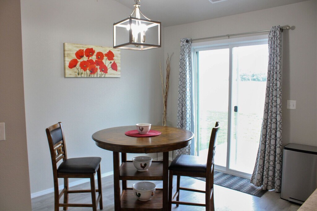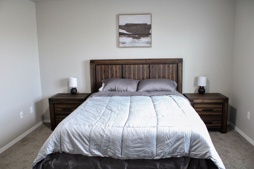 Newer build (2021), serene, quiet neighborhood and FULLY FURNISHED, one story, single family home for short term rental. 3 to 6 month lease agreements preferred. Convenient location close to highways, shopping, hospitals and schools! This tidy, well appointed 3 bedroom, 2 bath home has open concept living, dining and kitchen areas. 2 bedrooms are furnished with Queen sized beds, a 2 drawer nightstand and chest of drawers to maximize storage. House is situated similarly to a split floor plan with regard to the bedrooms for additional privacy considerations. Bedroom closets are ample. 3rd bedroom has been designated as a small scale office/home gym (rower, resistance band, dumbbells). Upright storage freezer in spacious 2 car garage for larger items or overflow. Great natural light and energy efficient bulbs and appliances throughout. All appliances, furnishings are new as of June 2021. All utilities are included in the rental price! Plus, there is a Firestick with Netflix and Hulu for streaming TV. Router for internet access included with rental. Lawn care also included. Just bring your clothes and your personal items! House is move-in ready
