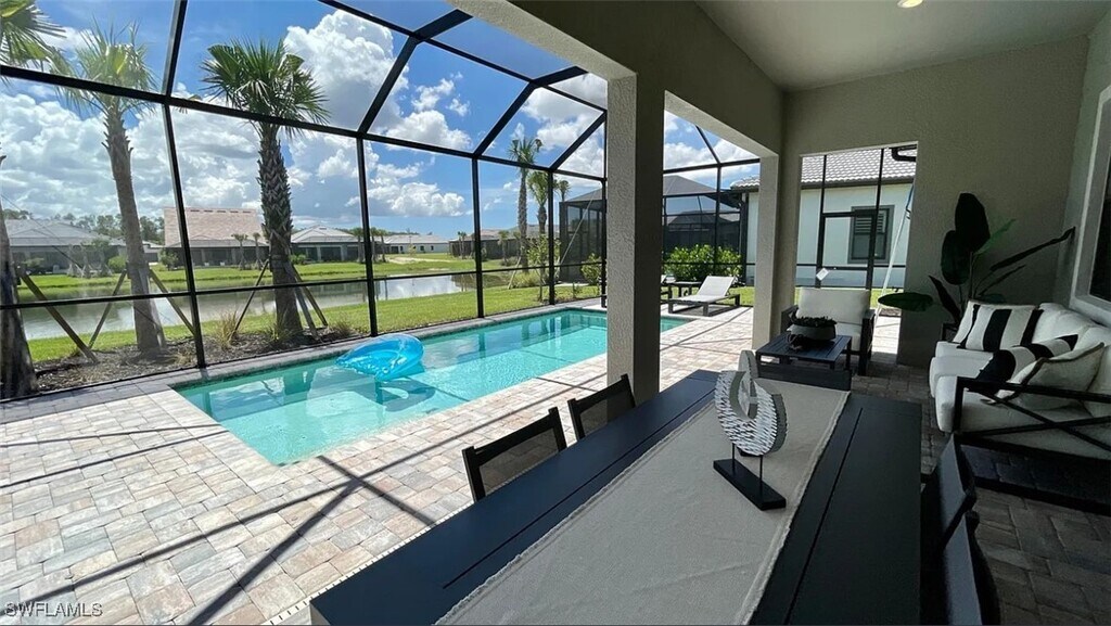Welcome to your dream retreat at 19649 Aqua View Lane in the exclusive gated community of WildBlue,Estero,Florida! This stunning turnkey-furnished single-family home perfectly blends luxury,comfort,and resort-style living. Featuring 3 spacious bedrooms,a versatile den,and 2 beautifully appointed bathrooms,this home offers everything you need for the ultimate Florida lifestyle. Step inside to discover a bright open-concept floor plan designed for entertaining and relaxation. The great room flows effortlessly into the gourmet kitchen with stainless steel appliances,a large island,and plenty of seating for family and friends. Elegant finishes,high ceilings,and expansive glass sliders fill the space with natural light and create a seamless indoor-outdoor living experience. The primary suite is your private sanctuary,featuring a king-size bed,a walk-in closet,and a spa-inspired ensuite bathroom with dual vanities and a spacious walk-in shower. Two beautifully furnished guest bedrooms with queen and full-size beds ensure comfort and privacy for everyone. Step outside to your private screened lanai and soak in the breathtaking lake views while enjoying the sparkling swimming pool—the perfect setting for morning coffee,sunset cocktails,or weekend gatherings. Located in one of Estero’s most desirable communities,WildBlue offers an unmatched lifestyle with resort-style amenities,including a clubhouse,fitness center,resort pool,tennis,pickleball,and miles of scenic walking and biking trails. Whether you're looking for a relaxing seasonal getaway or a luxurious long-term escape,this home delivers an exceptional experience of Florida living at its finest. Available for seasonal rental — January through April 2026 already booked! Don’t miss this rare opportunity to enjoy paradise in WildBlue!
