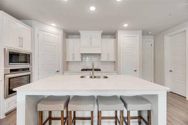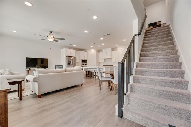 This beautifully designed townhome checks all the boxes for modern living in Allen, TX and is move-in ready. Well maintained, one-owner residency that perfectly blends trendy design with everyday convenience — ideal for today’s on-the-go lifestyle. The open-concept first level features sleek hard-surface flooring and a striking wrought iron staircase, creating a bright, Instagram-worthy space for entertaining or relaxing. The chef-inspired kitchen is the heart of the home, showcasing quartz countertops, stainless steel appliances, an oversized cooktop, and built-in oven and microwave—perfect for hosting friends or weeknight meals at home. Stylishly upgraded bathrooms add a polished touch throughout. The primary suite is a peaceful retreat, complete with a tray ceiling, dual sinks, a spacious walk-in closet, and a spa-like oversized shower with bench seating. Upstairs level also offers two generously sized secondary bedrooms plus a flexible loft or game room, perfect for a home office, workout space, or chill zone. An oversized two-car garage provides extra storage and everyday ease. Located in the highly desirable Cambridge subdivision, you’re just minutes from top-rated Allen ISD schools, fashionable shopping at Allen Premium Outlets featuring over 120 stores with major brands, some of the best dining, and entertainment—everything you need right at your doorstep. Enjoy low-maintenance living with modern elegance in prime location.