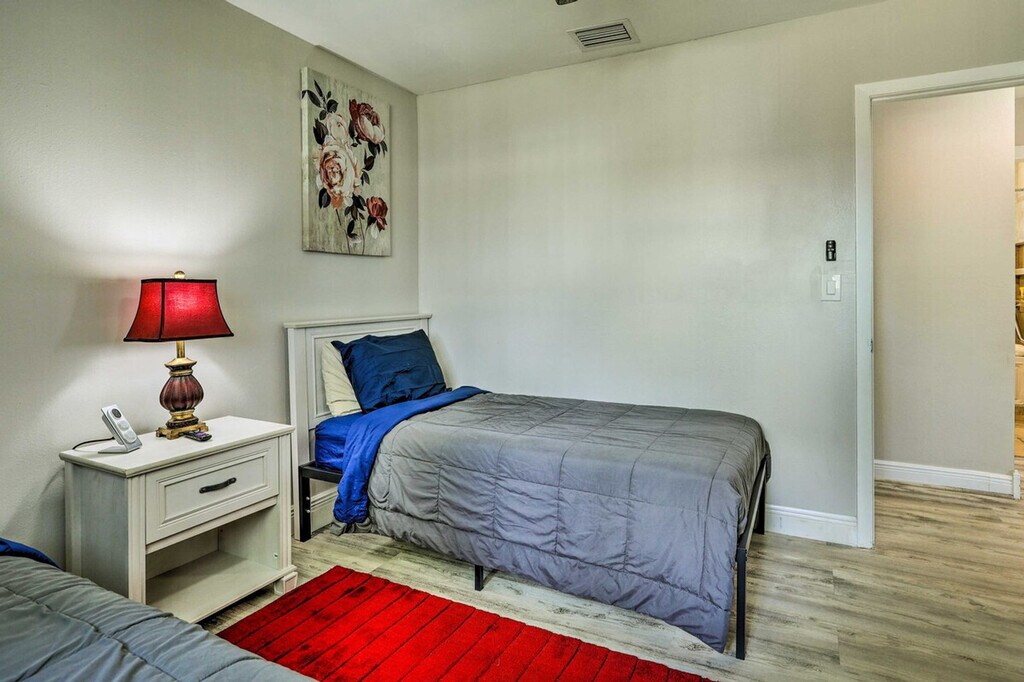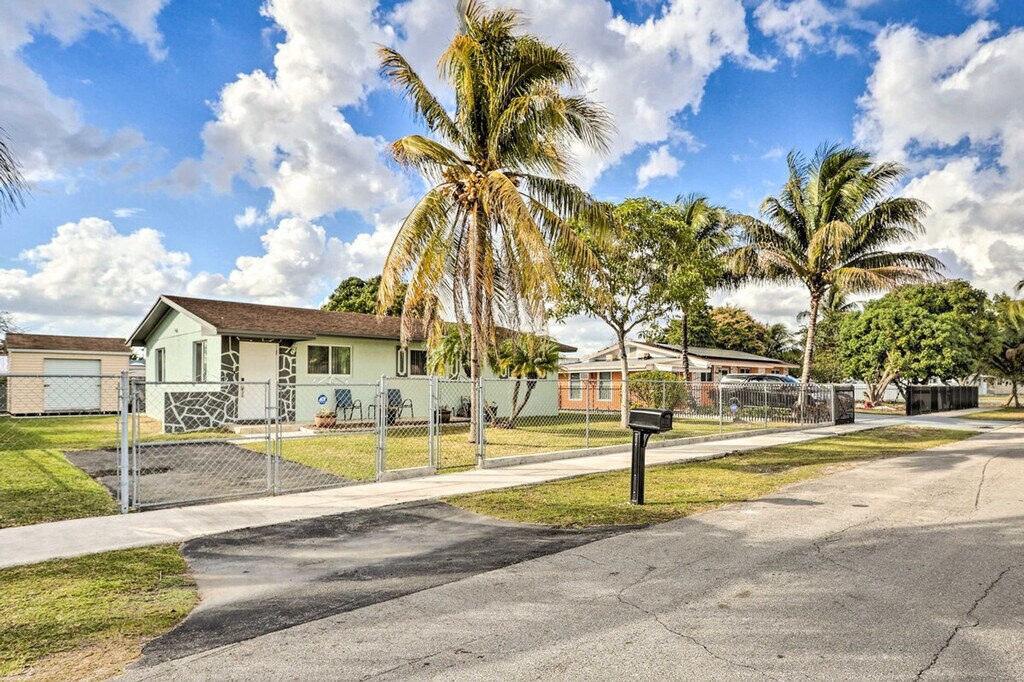 Feel at home in this radiant 3-bedroom, 1-bathroom home located in South Miami Heights. This centrally located vacation rental offers easy access to popular attractions like the Florida Keys, Everglades National Park, Zoo Miami, and South Beach. After a day of exploring or enjoying the beach, return to the comfort of home, fire up the grill for dinner, and unwind with a movie night on the Smart TV. This single-story home features a gas grill and free WiFi. The bedrooms are furnished with two twin beds in the first bedroom and queen beds in the second and third bedrooms. Enjoy the convenience of 4 Smart TVs, surround sound in the living room, a dining table, a laptop-friendly workspace, ceiling fans, a large fenced yard, and outdoor dining. The kitchen is equipped with stainless steel appliances, including a stove, oven, microwave, dishwasher, refrigerator, blender, dishware, flatware, and a Keurig coffee maker. Parking is available with a paved driveway for one vehicle and a grass lot for an additional vehicle. Situated in South Miami Heights, this home provides easy access to the Florida Keys, Everglades National Park, Zoo Miami, and South Beach, making it an ideal base for exploring the area's attractions. This property has a no-smoking, no-pets, and no-parties policy. Guests must be at least 25 years old to book. The property requires one exterior step to enter and features keyless entry for convenience. Your safety is ensured with exterior security cameras that record video when activated by motion, facing the front outdoor entry, the north side of the yard, the patio, and the rear windows. These cameras do not look into any interior spaces. Registration Number: U [SI]