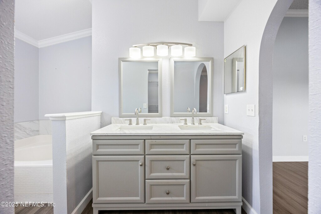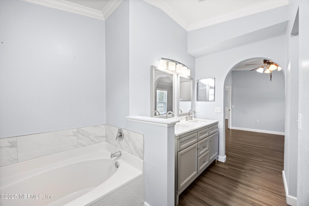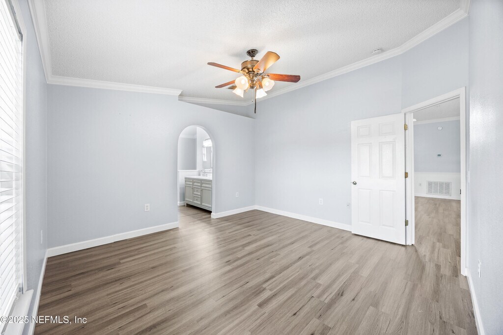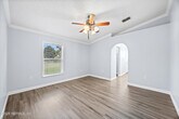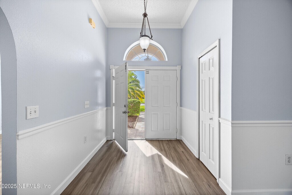 This gorgeous Jacksonville rental offers breathtaking water views and sits on nearly a quarter-acre in Sutton Lakes. Inside,you'll find vaulted ceilings,upgraded LVP flooring,crown molding,and an inviting open layout perfect for entertaining. The kitchen features Brazilian cherry cabinetry,granite counters,and stainless steel appliances. The primary suite overlooks the water and includes a walk-in closet plus a luxurious en suite with a frameless tiled shower,garden tub,and elegant vanity. Secondary bedrooms are spacious with walk-in closets,and the screened lanai provides the perfect spot to relax while enjoying the view. Additional perks include a fenced yard,newer roof,brand-new gas water heater,irrigation well,and epoxy-coated garage floors. Sutton Lakes residents enjoy pools,playgrounds,green spaces,and a basketball courtall just minutes from I-295,shopping,dining,entertainment,and the BEACH! MLS# 2118908