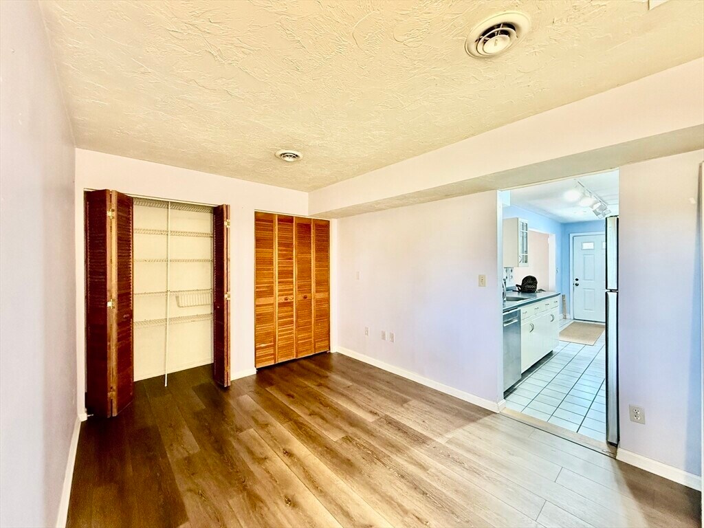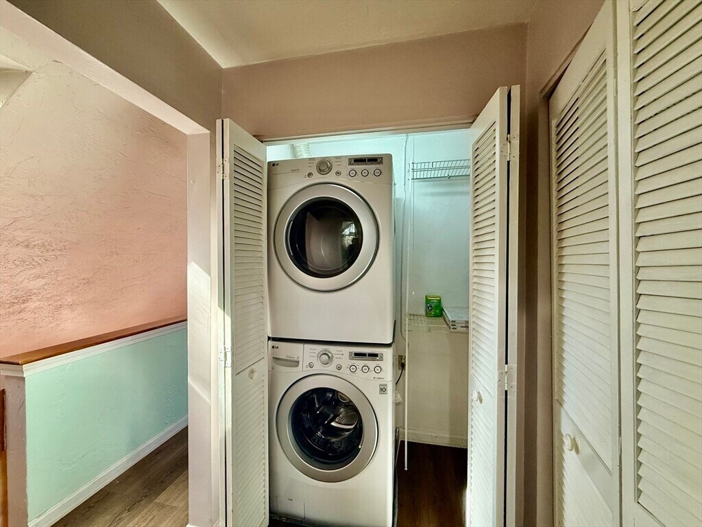 Available Now! Stylish 2BR/1BA loft-style end-unit townhouse in highly desirable Whitman Pond Village,Weymouth! Conveniently located near shopping,restaurants,and the E. Weymouth commuter rail. This bright home offers an open floor plan with vaulted ceilings,a cozy wood-burning fireplace,and sliding doors leading to a private fenced patio. The kitchen features new stainless steel appliances,a breakfast bar,and ample cabinet space. The first-floor bedroom includes double closets,while the loft-style second bedroom has a skylight and ceiling fan. Enjoy the convenience of in-unit laundry,central AC,a walk-in storage shed,and deeded parking (#28). No pets or smoking. Ideal for couples or young professionals seeking comfort and convenience! MLS# 73445222