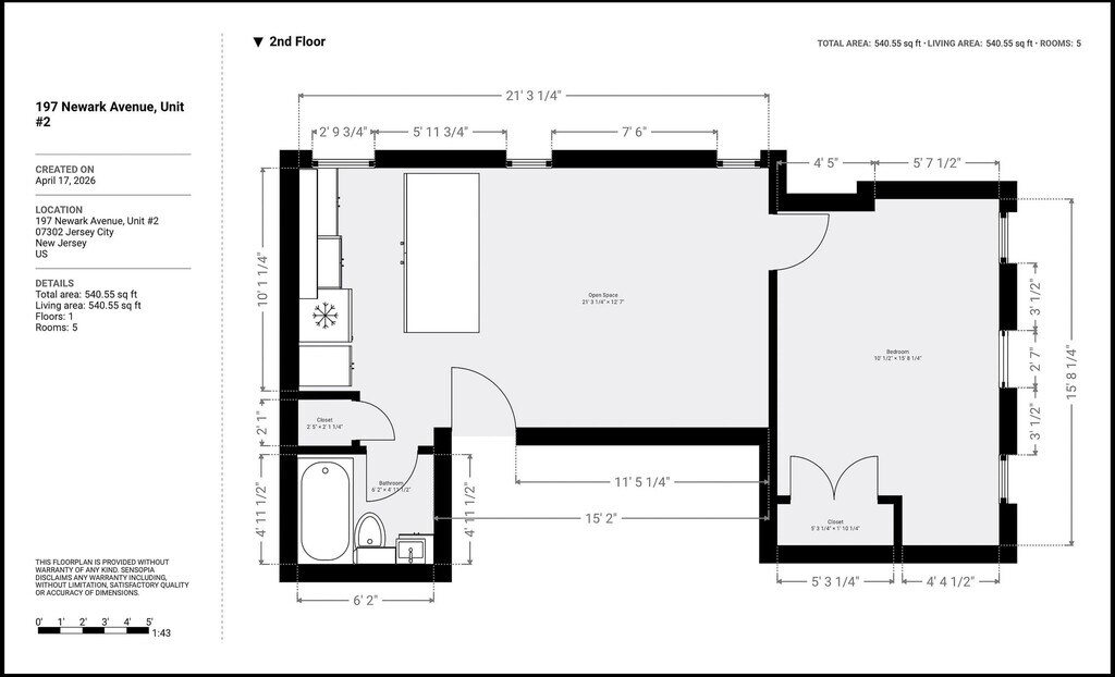There is currently a 1 Bed 1 Bath Apartment for rent with 540 listed at 197 Newark Ave. It is Available April 23, 2026.
