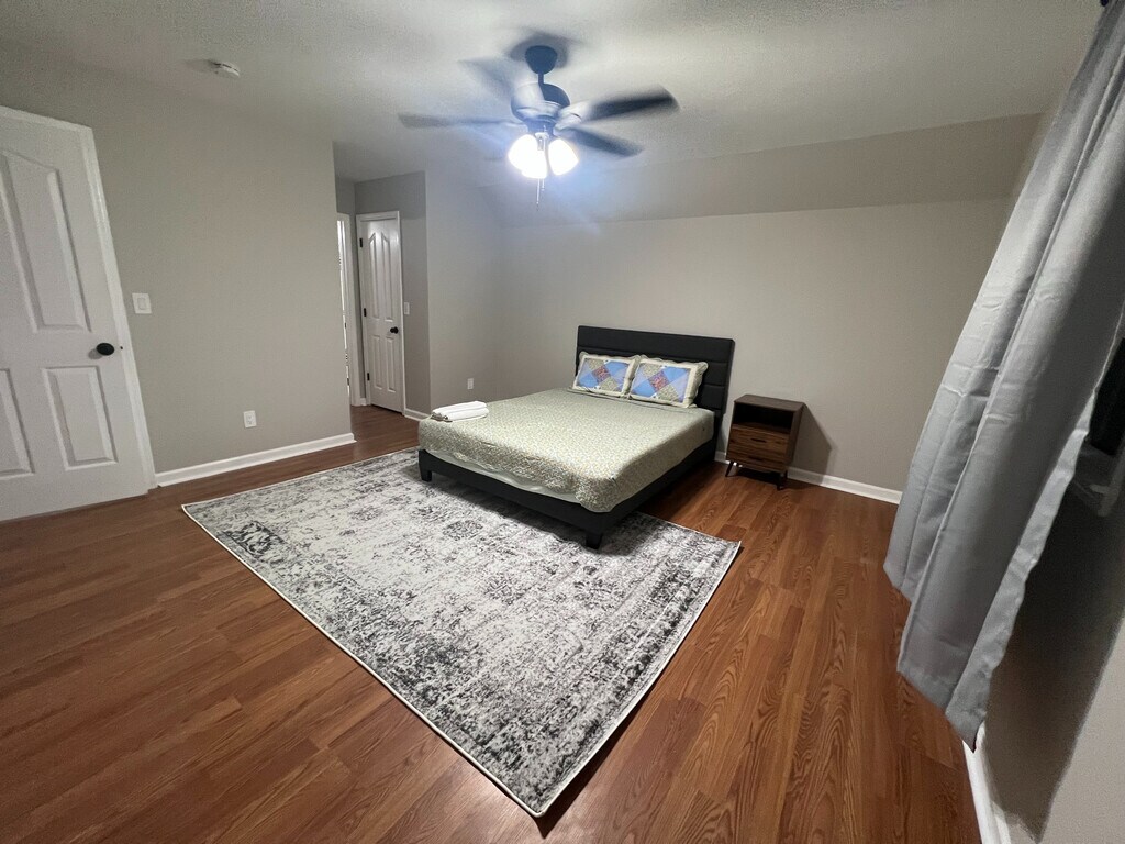 Room for rent: Kick back & relax in this calm, stylish space. This home is a peaceful retreat after a day of work or exploring the city. The open living space is perfect for entertaining family and friends. The kitchen features white cabinets, granite countertops, tile black splash and new stainless steel appliances. The primary bedroom features a walk-in closet with custom shelving and a spa en-suite bathroom with glass shower and beautiful tiled floors. Three additional bedrooms all with walk in closets and full bath with soaking tub complete this charming home. Outside you can enjoy your morning coffee on the front porch or retreat out back to the newly built deck and fenced-in back yard in which you can create your own oasis for outdoor entertaining. 10 mins from Atlanta Airport 15 mins from Atlanta Downtown 15 mins from Emory 10 mins from Edgewood restaurants and shopping *Bedrooms 1 and 2 come furnished with bed, nightstand, and rug, bedrooms 3 and 4 come unfurnished. **Bedroom furniture removable or added at tenant request ***In house Washer and Dryer Note: Do not visit this property without first contacting us to schedule a tour at the number below.