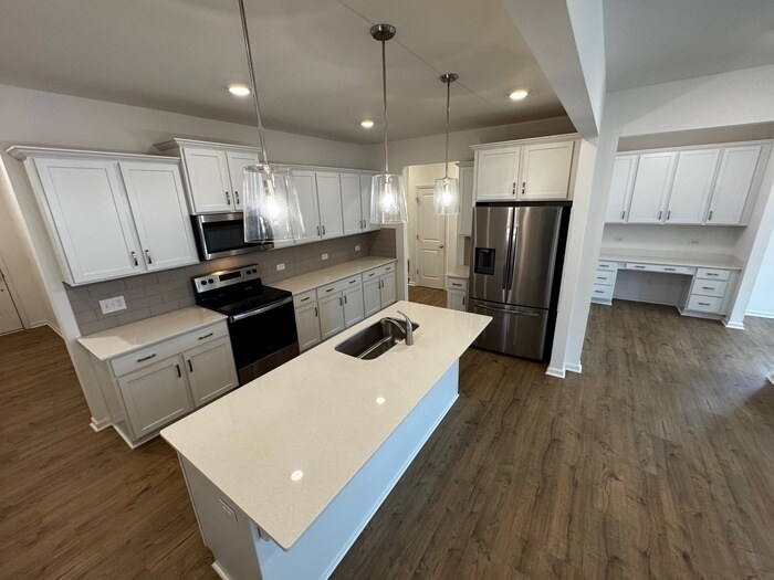 Explore this exceptional rental opportunity in Drummond Village! This magnificent 2,173-square-foot home must be experienced to fully appreciate its spacious rooms. The rental features three generously sized bedrooms and two and a half bathrooms, providing ample space for diverse tenant needs and comfortable living. Upon entering the front door, you will be greeted by an inviting open concept with easy-to-maintain luxury vinyl plank flooring on the first floor. The modern kitchen boasts ample counter space for cooking and entertaining, centered around a spacious island. The elegant great room, complemented by a separate dining room and a tech center cove with a built-in desk and storage, offers a versatile space for a range of activities. The second floor features a spacious TV/game room and additional bonus space. With a split bedroom floor plan, the primary bedroom provides a private retreat, while the white en-suite bathroom exudes brightness and cleanliness. The primary walk-in closet is generously sized, accommodating a window. The second and third bedrooms offer French door closets, and the upper floor features a laundry room with a built-in folding table and storage closet. The hallway, complete with full bathroom finishes, completes this remarkable home. The Elon design is highly adaptable, allowing you to create a home that suits your lifestyle and family dynamics, tailoring this rental to meet your specific needs. Relax and entertain on your private back patio, situated off the dining room, or in your secluded fenced backyard oasis. To tour the property, please register at The listing will also be available for brokers to showcase. We do not advertise on Craigslist, Facebook Marketplace, or any social media platforms. We will never request wire transfers or funds via payment apps on mobile devices for the first months rent or security deposit. NO SMOKING MINIMUM REQUIREMENTS: - Gross income of three times the rent - Credit score of 650 or higher - No prior evictions or court filings - Employment and rental history verification APPLICATIONS ONLY ON Eligibility: - 18 years of age or older must fill out an application - Application fee of $55 per person Approval: Upon approval, a one-month security deposit must be paid within 48 hours of the lease signing. This property allows self guided viewing without an appointment. Contact for details.