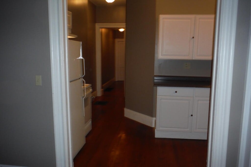 Apartment offers hardwood floors, open kitchen/living room, in unit laundry hook ups, 2 bedroom approx. 10x10, and a covered front porch. Situated on a corner lot with off street parking. Large yard to enjoy within walking distance to downtown and close to bus stop.