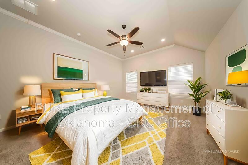 Discover Your Perfect Haven at 19705 Bolton Road in Edmond! Welcome to effortless living in the sought-after Castleberry addition, where comfort meets contemporary style in this stunning 1,689 sq. ft. home. Step into a thoughtfully designed space featuring 3 spacious bedrooms and 2 full bathrooms, where every detail has been crafted for your comfort. The heart of your home showcases a chef-inspired kitchen with gleaming stainless steel Samsung Smart appliances, pristine white quartz countertops, and custom cabinetry that makes entertaining and daily meal prep a joy. Picture yourself relaxing by the warm glow of your fireplace in the inviting living room – the perfect spot for cozy evenings and creating lasting memories with loved ones. When you're ready, escape to your generous primary suite, complete with a spa-like ensuite featuring dual vanities, a luxurious soaking tub for unwinding after long days, and a spacious separate shower. The thoughtfully positioned walk-in closet connects seamlessly from both the bathroom and laundry area – because convenience matters in everyday living. Community Living at Its Finest allows you to embrace an active lifestyle with resort-style amenities right at your doorstep – dive into the sparkling community pool, stay fit in the modern fitness center, or gather with neighbors in the welcoming clubhouse. Watch your children play safely in the dedicated playground area. Conveniently located, it's an easy drive to many major highways, dining, and entertainment. Plus, in the excellent Deer Creek School District, your new home places quality education within reach. Experience the comfort you deserve and the lifestyle you've been dreaming of. POLICIES PERTAINING TO PETS/ANIMALS PETS ACCEPTED: 2 pets (dogs/cats) accepted. To simplify pet verification and ensure policy clarity, we use PetScreening, a third-party service. All applicants with pets must complete this screening. Full animal policy details are available on our website. Breed restrictions apply. Pet Fees: $400 Non-refundable for the first pet, $250 for an additional pet. Monthly pet fees range $30-$80 per pet, per month. *Inapplicable to assistance animals. Resident Benefit Program: Elevate your living experience! Every PURE home includes our Resident Benefit Package ranging from $25.99 - $49.99 and may include perks such as an on-demand pest control, liability insurance, credit building, and much more! This property comes equipped with Gig-Speed Internet at $65.00/month! Security Deposit Waiver Program: Pay the traditional security deposit amount, or reduce your move-in costs with our Security Deposit Waiver Program. Eligible applicants can replace the traditional deposit with an affordable monthly fee. While you remain responsible to pay any damages upon move-out, this program offers substantial upfront savings of move-in! PURE Utility Concierge: Moving in just got easier! Enjoy PURE Utility Concierge services at no extra cost, making your transition smooth and simple. The lessee(s) understand(s) that the move in fee is a one-time fee of $ 125.00, that will cover the administrative and periodic inspections expenses for the execution of this Residential Lease Agreement and for the scheduling and performance of the periodic inspection. Application fee is $65 per adult All information is deemed reliable and accurate but not guaranteed. Prospective residents are responsible for verifying all property details and conditions to their satisfaction prior to submitting an application. Please be aware we do not advertise on Craigslist. We do not accept applications from any 3rd Party service including Zillow. Visit our website for more information to schedule a showing or to apply. www.ok.purepm.co OK License #178478 PURE Property Management of Oklahoma PO Box 22393, Oklahoma City, OK 73123