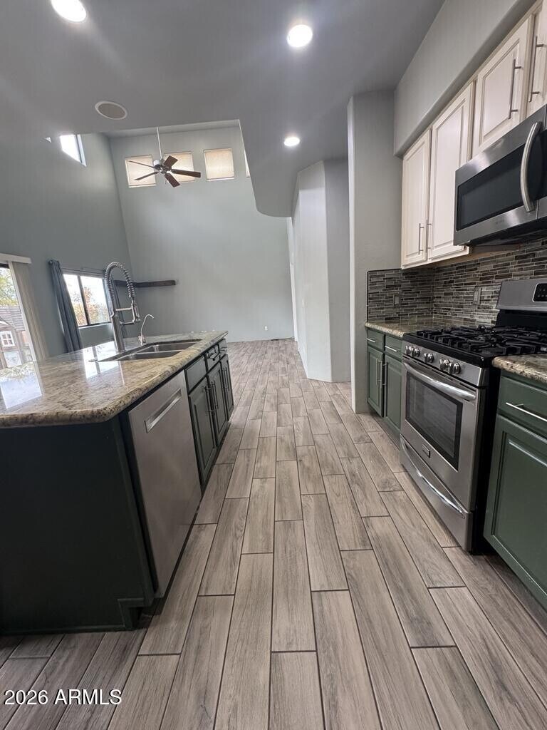MUST SEE dream home 4 bedroom/3 bath. Enter through the private courtyard with a built-in chiminea. Enjoy the north-facing backyard paradise with artificial turf,fruit/shade/flower trees,and thriving Koi pond. Modern kitchen opens to lofted family room,and French doors lead into main floor bedroom/office/playroom w/ two closets and adjacent full bath. Upstairs you'll find the Master suite with beautiful custom closet and private access to covered balcony,in addition to two more bedrooms,another full bath,and a loft. The 2-car garage boasts tons of storage and new insulated door. Pets approved on a case by case basis.