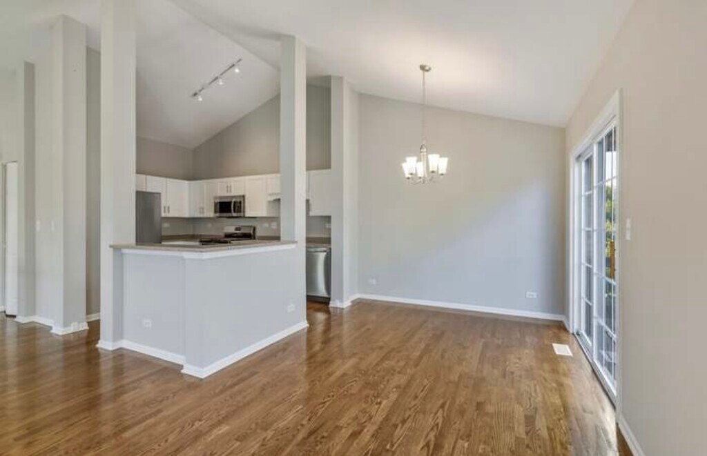Start your next chapter in this well-maintained end-unit townhome located in the desirable Herons Landing neighborhood of Bartlett. This spacious home offers approximately 1,782 square feet of living space with 3 bedrooms, 3 full bathrooms, and a 2-car garage. The main level features a bright, open living area with vaulted ceilings, a gas-log fireplace, recessed lighting, and large windows that provide abundant natural light. The adjoining dining area includes double sliding doors that lead to a private deck, ideal for outdoor relaxation or entertaining. The kitchen includes white cabinetry, stainless steel appliances, and a convenient pantry. The primary suite offers an en-suite bath with double vanity, walk-in shower, and separate tub. A second bedroom and full bathroom complete the main level, which is accented by hardwood flooring and neutral paint colors throughout. The lower level includes a spacious family room with sliding doors to an outdoor patio, a third bedroom, full bathroom, and laundry area. The home also includes an unfinished basement with 9-foot ceilings, offering potential for future customization or additional living space. Recent updates (2024) include refinished cabinets, new kitchen appliances, updated bathroom vanities and flooring, full interior paint, and new carpeting on the lower level. Previous upgrades include installation of hardwood floors throughout the main living area. Conveniently located near shopping, dining, parks, forest preserves, and transportation options. Schedule a showing today to experience all this property has to offer.