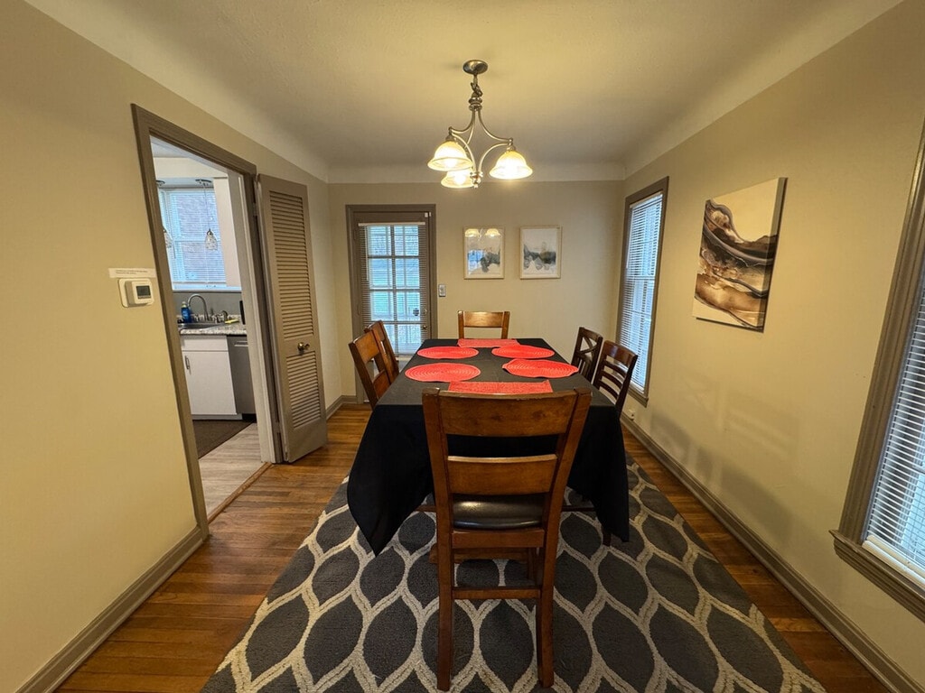Nestled in Cleveland Heights, this charming colonial-style home offers a cozy retreat just a short drive from Cleveland Clinic and University Circle. Featuring three bedrooms and 1.5 baths, the home boasts hardwood floors throughout, a formal dining room, a fully stocked kitchen, central air, and a two-car detached garage. Feel at home in the spacious living room with a flat-screen Smart TV and plenty of seating. The home is thoughtfully designed for both business and vacation travelers. The dining room comfortably seats six and connects to a fully stocked kitchen equipped with all major appliances, cookware, and cutlery. Additional cooking supplies are available upon request. The first floor includes a half bathroom, while the second floor houses three bedrooms and a full bathroom with a separate tub and standing shower. The basement offers a dedicated laundry area with a washer and dryer. Pets are welcome, and the number of pets is negotiable. A cleaning fee is negotiable and is based on the number of occupants, length of stay, and number of pets. Additional services include private chef services, hospital amenities, car transportation, first-floor living arrangements, and car charging stations. Located on a semi-busy street, this home is within walking distance to Starbucks, Panera, Dunkin Donuts, Whole Foods, and Planet Fitness. Cain Park is also nearby, perfect for dog walks, tennis, summer concerts, and wine tastings. A short 10 to 15-minute drive will take you to John Carroll University, Notre Dame, Cleveland Clinic, and CWRU. The home is located on a semi-busy street, so expect some traffic noise during morning and evening commutes. Guests must be comfortable using stairs to access bedrooms, laundry facilities, and the full bathroom. Parking is free during the day on the street, but cars must be pulled into the driveway at night to avoid a ticket. No smoking is allowed in the home, and pets must be approved before booking. Snow removal is provided only if there is more than 3 inches of snow, and lawn maintenance is taken care of during the spring, summer, and fall. [SI]