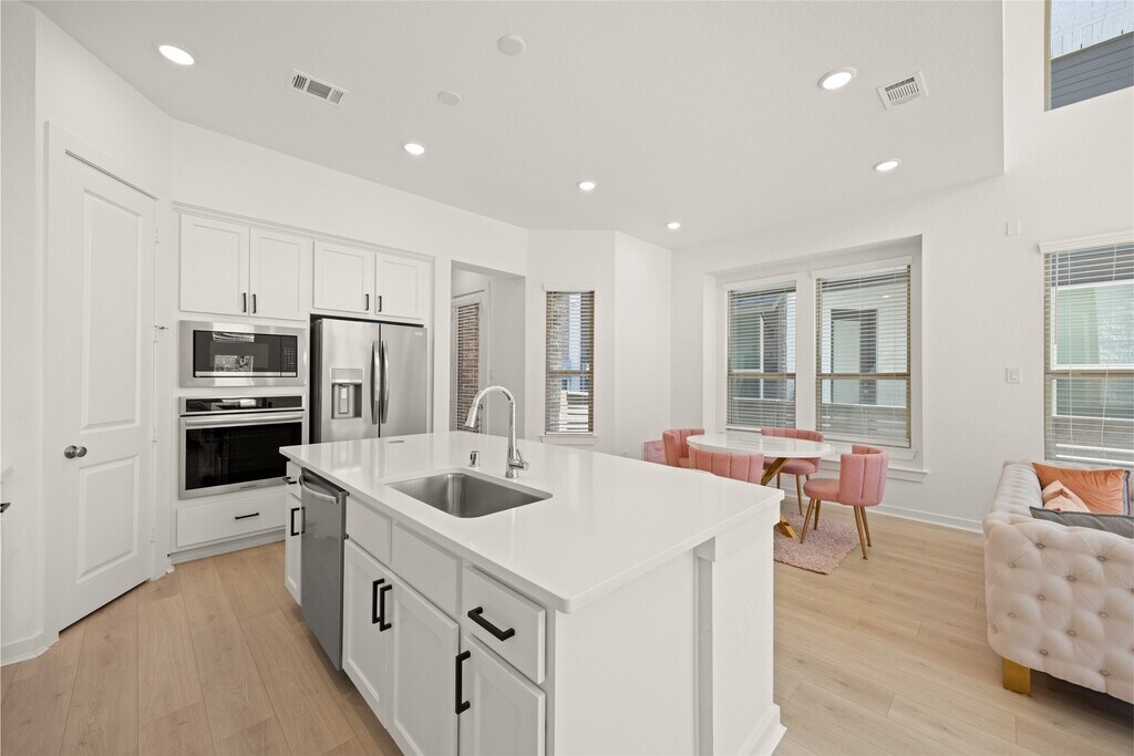Welcome to 19726 Curved Steel Dr.,a 3-bedroom,2.5 bath townhome located in the highly sought-after Bridgeland Central Community. This two-story home offers an open-concept layout with high ceilings and great natural light. The kitchen features quartz countertops,stainless steel appliances,a large island,and opens to the living and dining areas. Upstairs,the primary suite offers a walk-in closet and bath with dual vanities and oversized shower. Two additional bedrooms and a flex space provide room for guests or a home office. Enjoy a private patio,low-maintained yard,and attached garage. Bridgeland offers pools,parks,trails,lakes,and is zoned to Cy-Fair ISD top rated schools with easy access to shopping and dining. MLS# 83820373