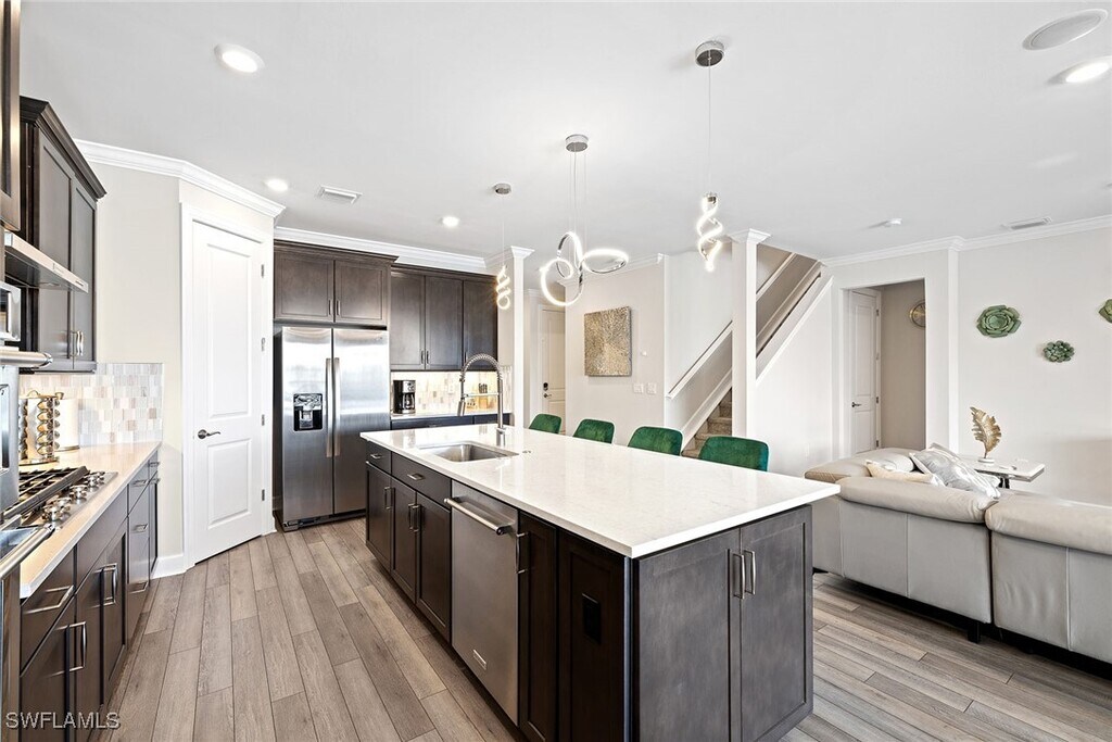 Available for January and April 2026. Welcome to this gorgeous new single-family home in Manatee Cove,featuring new furnishings and a stunning water view. Embrace every moment and enjoy this large pool,spa,and lanai,as well as an outdoor kitchen equipped with a built-in style gas grill,an extra-burner grill,loungers,a table for 6,and a couch/chairs for outdoor entertaining. The first floor features a spacious primary suite,complete with a king-size bed,an impressive shower,a garden tub,and a walk-in closet. Additionally,there is a guest bedroom or office with a Murphy bed and desk set featuring a 52” smart TV. The gourmet kitchen features an open floor plan,a spacious dining area that seats up to 8,and a stylish bar dining area. The living room offers comfortable seating and a 72” TV. Other features include two finished bedrooms with queen beds and a full bathroom upstairs,totaling three full baths. The home is equipped with lovely custom lighting and special touches,ensuring a vacation-ready experience without the need to bring anything extra. The property also includes an open two-car garage and access to a community pool. While the property's amenities may make it hard to leave,if you venture out,Naples Beaches,historic shopping,and fine dining in downtown Naples and Marco Island are just a short trip away. Experience the one-of-a-kind Florida lifestyle!