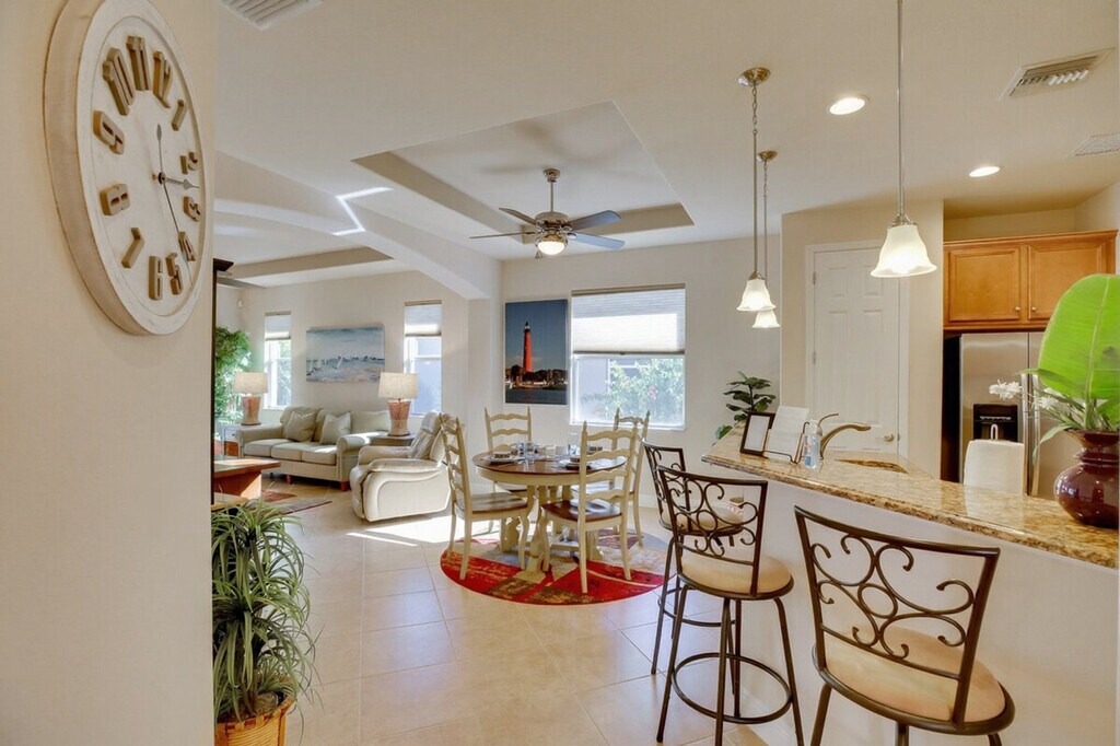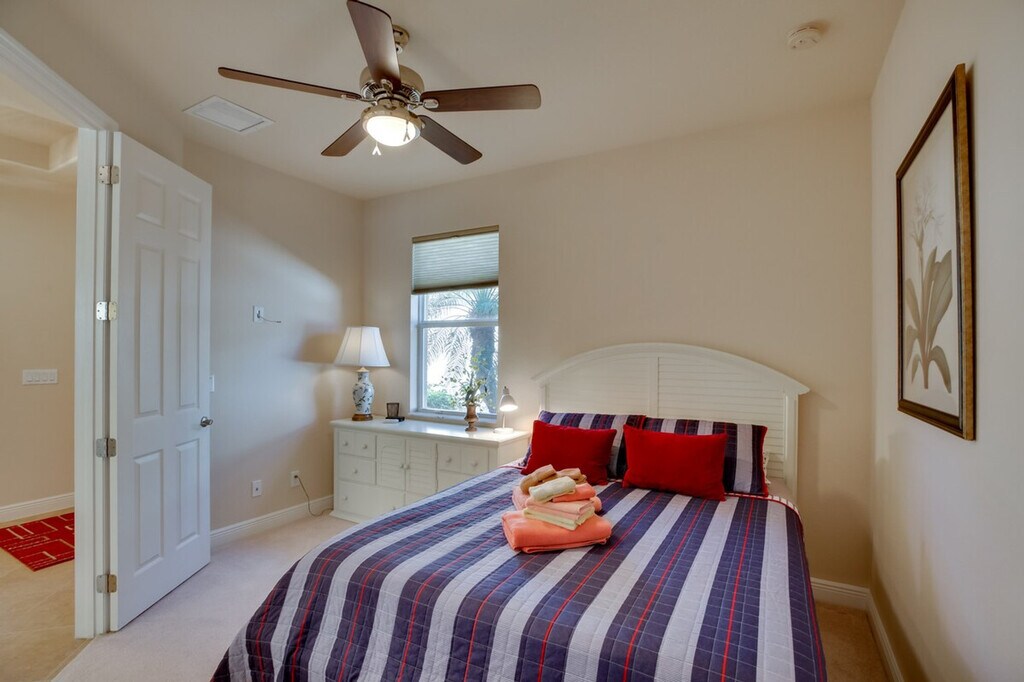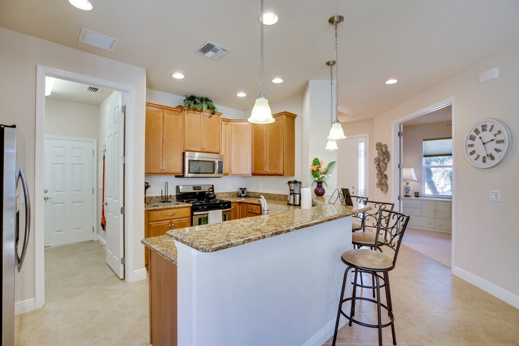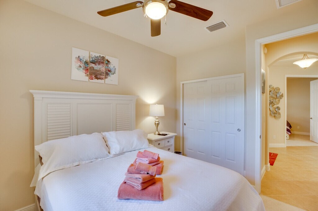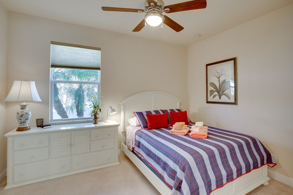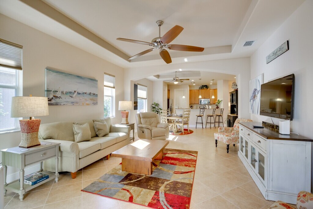 Feel at home in this relaxing Estero getaway, just south of Fort Myers and Cape Coral. This home offers 3 bedrooms, 2 bathrooms, and 1,500 square feet of well-appointed living space. This vacation home features free Wi-Fi, a smart TV with streaming (no cable access), a dining table, and a walk-in closet. The fully equipped kitchen includes stainless steel appliances, a microwave, toaster, coffee maker, dishwasher, cooking basics, dishware and flatware, and a breakfast bar with 3 stools. You can also enjoy the convenience of a washer and dryer, linens and towels, central air conditioning, and ceiling fans. Guests have access to a garage for 1 vehicle and a driveway for 2 vehicles. The HOA requires that an additional $150 fee be paid directly to them after booking. This vacation rental is part of a great community and is centrally located near I-75, shopping, and dining. The sands of Bonita Beach are only 14 miles away. Smoking or vaping is not allowed in the home, garage, or lanai. No pets are allowed. Events, parties, or large gatherings are prohibited. Guests must be at least 25 years old to book. The HOA requires that an additional $150 fee be paid directly to the HOA after booking. [SI]