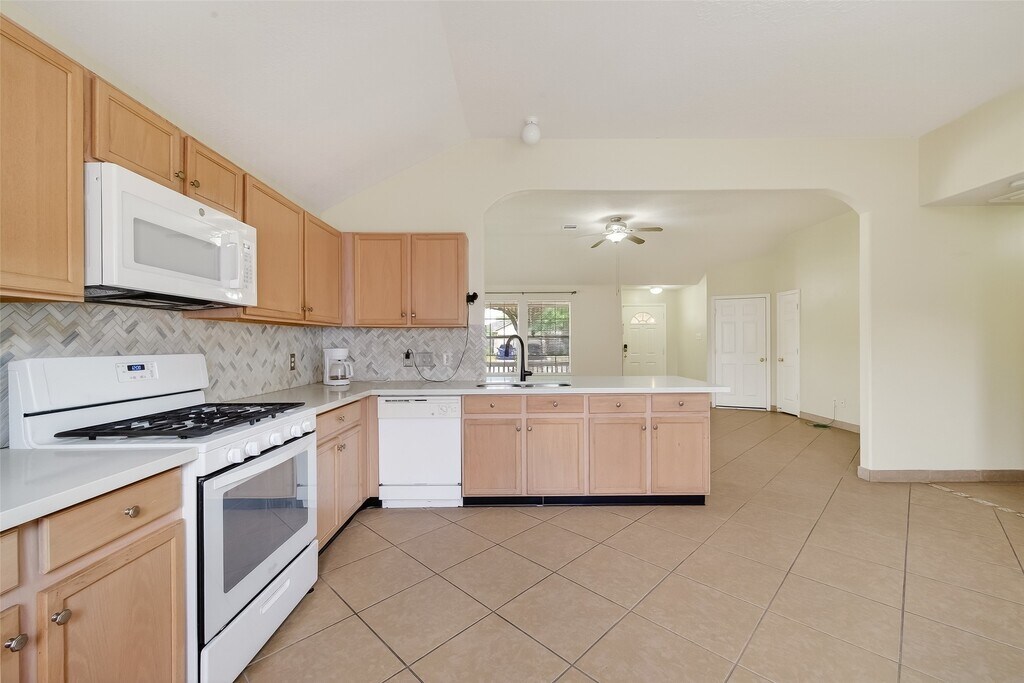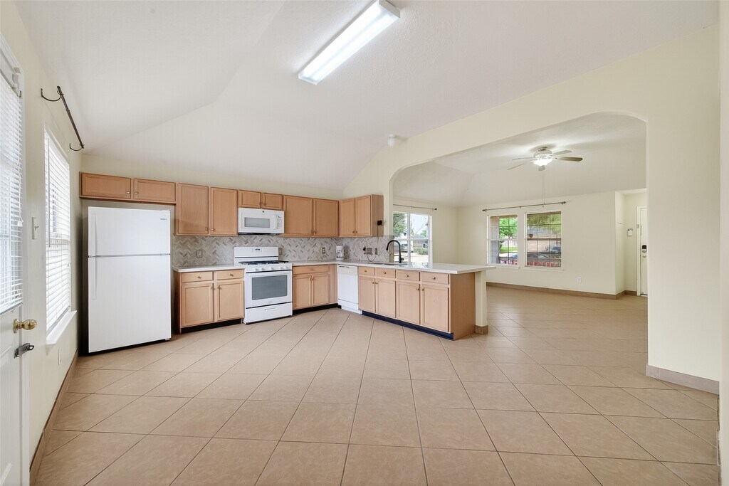 Immaculate house,clean and bright ready to move in ! Enjoy a Cozy front porch on a cul-de sac lot. Floors ceramic tile throughout the entire house,12" ceiling,New pastel colors painted,new light fixtures,quartz kitchen countertops,cabinets in golden oak color 36 inches. White appliances Refrigerator included,Gas stove,Microwave,marble shine back splash,Large pantry food space. Washer and Dry remain in the house. Large Master bedroom,with High ceiling and fans,Large water-jet jacuzzi with walk- in separate shower. Full-size washer and dryer are located in the home. Location,Location,Location,near to shopping center,Fry Rd. Walmart etc." Do not miss this opportunity MLS# 48208952