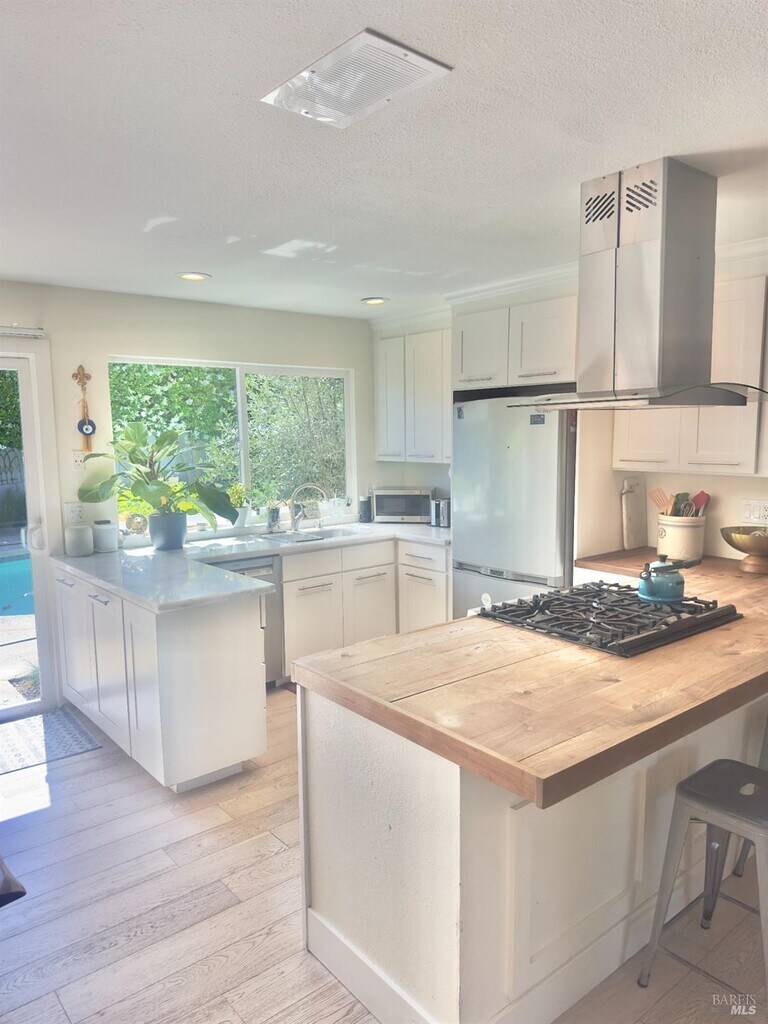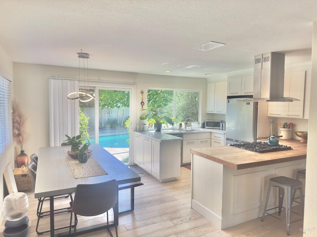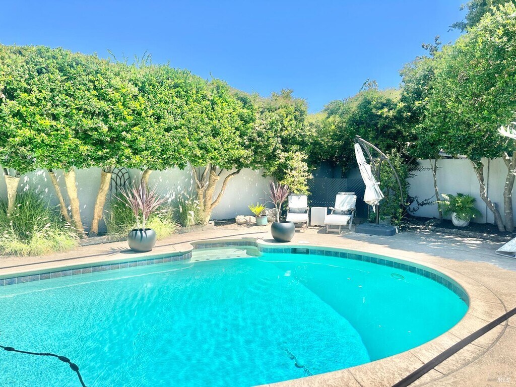 Fully renovated in 2020, this beautifully furnished three-bedroom, two-bath home blends modern comfort with timeless style. The interiors feature engineered oak wood floors throughout, kitchen with quartz and butcher block counters, and stainless steel appliances. The primary suite includes a luxurious ensuite with a soaking tub and elegant tile finishes, while the second bathroom offers a walk-in tile shower with a glass surround. Step outside to a spacious backyard oasis with a sparkling pool, charming gazebo, cozy fire pit, and BBQ, perfect for entertaining or relaxing. The property has a fenced front yard with abundant flowers, a nectarine and lemon tree, providing fresh, seasonal fruit. Move-in ready and fully equipped, this home offers both convenience and lifestyle. Available unfurnished and without utilities at a lesser rate. Two off-street parking spaces, no garage. Storage shed available. MLS#325072313