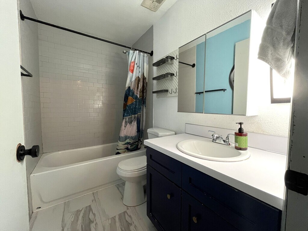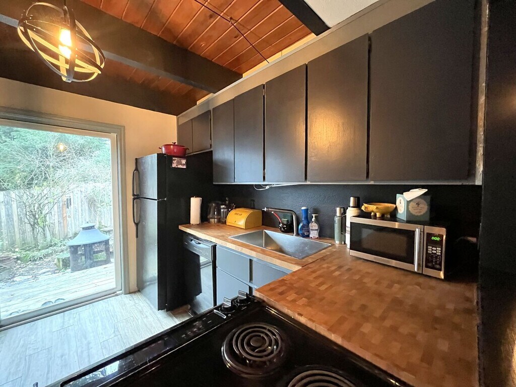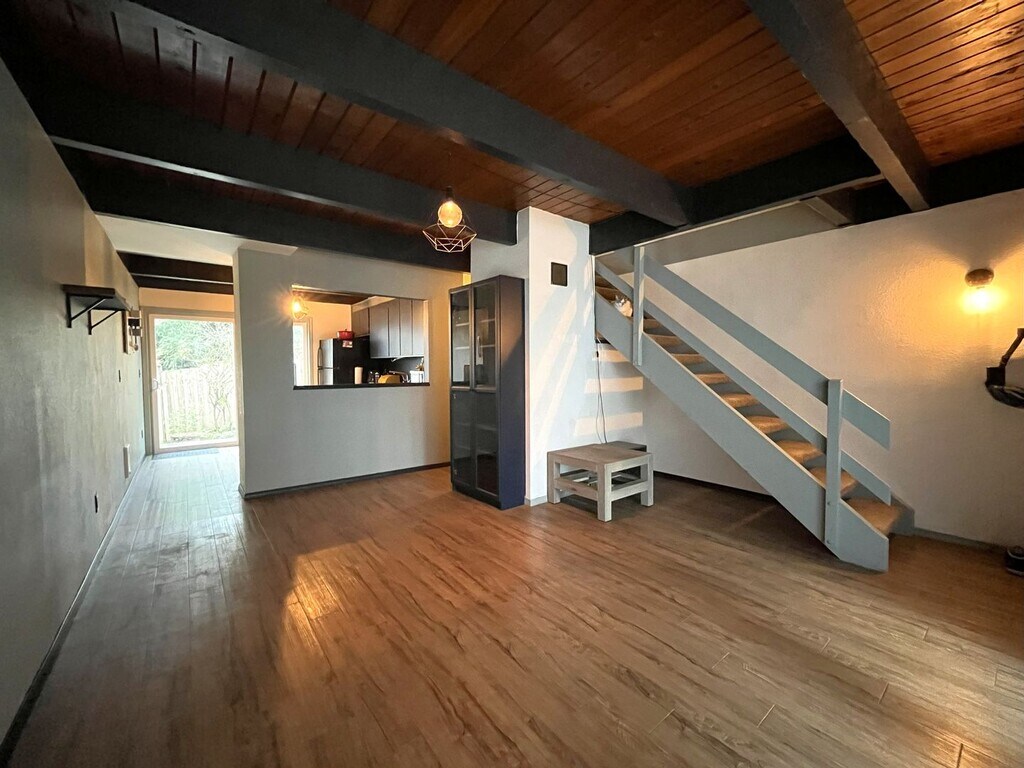 This two-bedroom, one-and-a-half-bathroom home offers 958 square feet of comfortable living with a long driveway and a one-car garage located on the ground level. A set of wooden stairs leads up to the entryway, which is connected to a welcoming balcony. Stepping inside, you enter a bright living room with wood flooring throughout the main level. This open space can accommodate many different furniture layouts and features floating stairs leading to the upper floor, as well as floor-to-ceiling windows near the entry that fill the room with natural light. Moving into the kitchen, you’ll find black appliances including a spacious refrigerator, dishwasher, and electric oven with a stovetop. A deep stainless steel single-basin sink complements the workspace, and a window above the oven overlooks the living room, creating an open and connected feel between the two spaces. This level also includes a half bathroom with a single vanity and extra room for storage, along with a full-size washer and dryer for added convenience. Upstairs, the fully carpeted second level hosts both bedrooms. The first bedroom is spacious and features a sliding glass door that opens onto a private balcony. This room also includes a walk-in closet with a window inside. The second bedroom offers a tall window, ample space, and sliding door closets. Between the two bedrooms is a full bathroom with a single vanity and a tub-shower combination surrounded by subway tile. Accessed through the kitchen, the fully fenced backyard offers privacy and charm, with a planter box, small trees, and bushes lining the edges — perfect for relaxing or gardening. Call or Text Our Leasing Agent at to schedule a showing! YouTube Video URL: Visit our website to apply and view other homes we have available! Do you need property management services? Maximize your income and cut your costs!