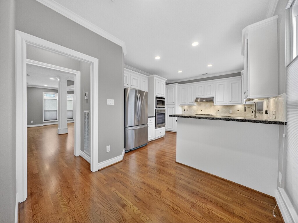 Beautiful townhome for lease on a quiet,tree-lined street in the River Oaks Shopping and Montrose area,giving you a central spot with a peaceful neighborhood feel. The second-floor living and dining spaces are light and inviting,with hardwood floors,a fireplace,and built-ins. Upstairs,the primary suite stands out with a freestanding soaker tub,a large walk-in shower,and great closet space. Two additional bedrooms make it easy to host guests or set up a flex space,and the downstairs room is ideal for a home office. Updates include granite,carpet,fixtures,window shades,paint,and more. Low-E double pane windows,ceiling fans,and zoned AC help keep the home comfortable year-round. French door refrigerator plus a full-size washer and dryer are included. Plenty of street parking,plus a private driveway and 2-car garage. Walkable to parks,top-rated HISD schools,restaurants,and grocery. Move-in ready and available now. MLS# 49607374