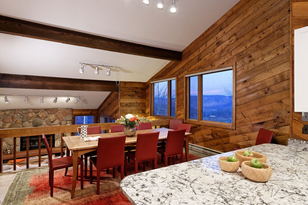 This unique location on the slope of Guggenheim Hill, with gorgeous wide open east to west views of Snowmass Village is secluded and nestled among the Aspens groves, providing a private quiet retreat feeling, in and above the forest. This home provides generous accommodations with refreshingly furnished mountain contemporary design in a classic ski chalet. Adjacent to the home you’ll enjoy direct ski in/out access to Guggenheim Private Ski Trail, or for those who prefer a gentler way down, with just a leisurely walk down Bridge Lane to Adams Avenue. This is a rare combination of seclusion and convenience. Perfect all year around. Skiing, hiking, and biking is just outside the door, or enjoy a drink and relax while watching the twinkling of the village lights below, and marvel at the wide open alpine vistas. STR# 049230