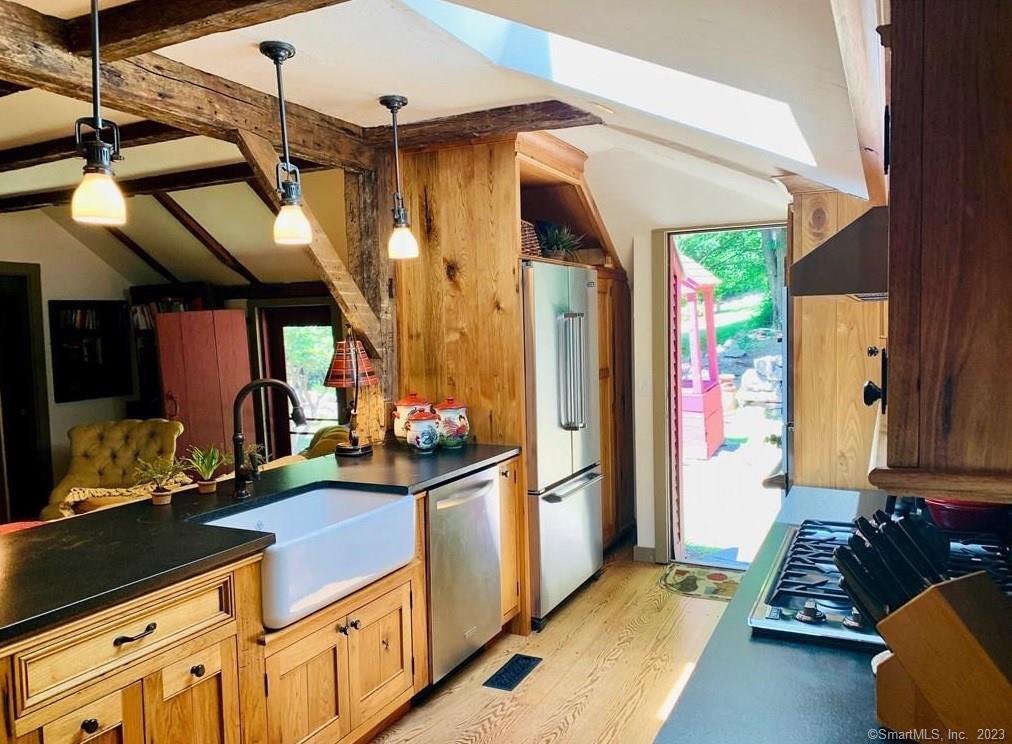 Call for Availability - Gorgeous New England Home that is absolutely stunning. This home has been totally renovated and designed by an interior decorator. The Red Rooster" House has artistic touches and you can be assured the quality of upgrades and high-end finished. The exposed beams, colonial hardware, rough-sawn wide board plank floors, brick fireplace mix well with the modern necessities. Master Bedroom and Full bath on the main level. The second Bedroom upstairs has been updated with vintage bath forming a cozy retreat. Coffee in the morning on the covered front porch facing east or dinner on the back patio. Only 3/4 mile to downtown Ridgefield with sidewalks connecting Library, theaters, shops, restaurants, parades and so much more. Only 50 miles NE of NYC. This is truly beautiful and you don't want to miss out on this one..." MLS# 24159467