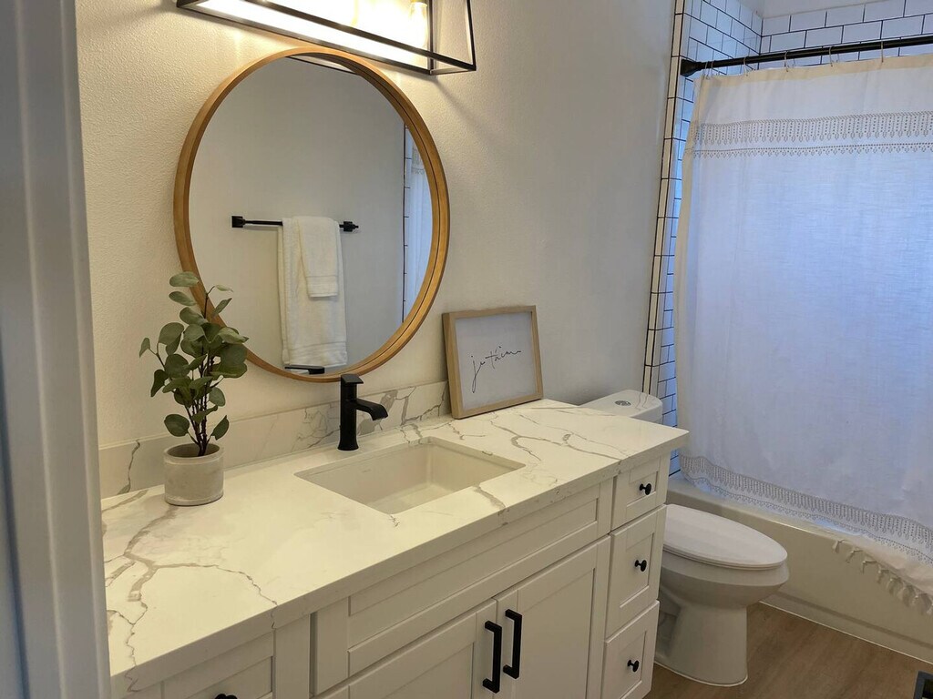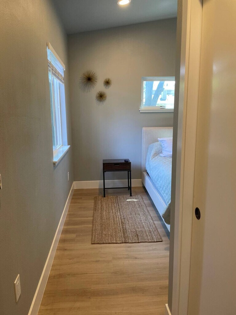 Enjoy a stylish experience at this centrally located 2-bedroom, 2-bath home near downtown Walnut Creek. Feel at home in this newly built space, perfect for anyone traveling for work, travel nurses, or those seeking a change of scenery. This home features a full kitchen, washer and dryer, along with kitchen essentials, bed linens, and towels available for use. Parking is available in the private driveway. Located in a quaint and quiet neighborhood with trail access, this home is conveniently located near Pleasant Hill BART station and has easy freeway access to 680. It's within walking distance of great restaurants and a short drive to downtown Walnut Creek for additional restaurants, bars, and shopping. Gyms and a variety of grocery store options are also located nearby. Construction will take place in the neighboring yard during city-approved hours. Check-in is at 2 pm PST, and an early check-in can be arranged, pending availability. We will supply you with toilet paper, paper towels, dishwashing detergent, dish soap, laundry detergent, dryer sheets, trash bags, coffee filters, and cleaning items to get you started during your stay. Replacement items will not be provided throughout your stay. [SI]