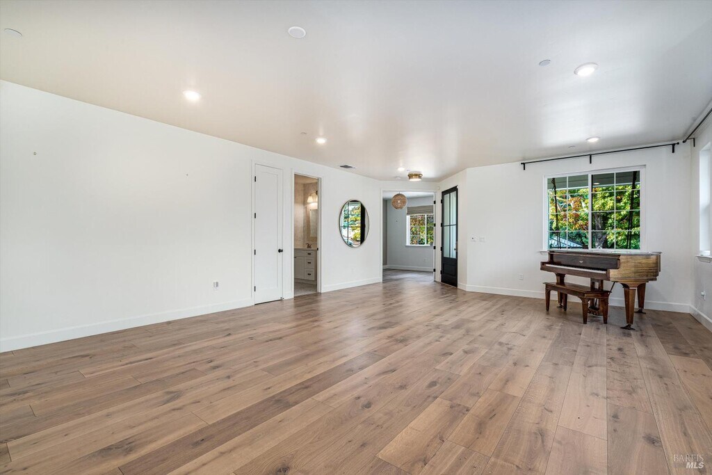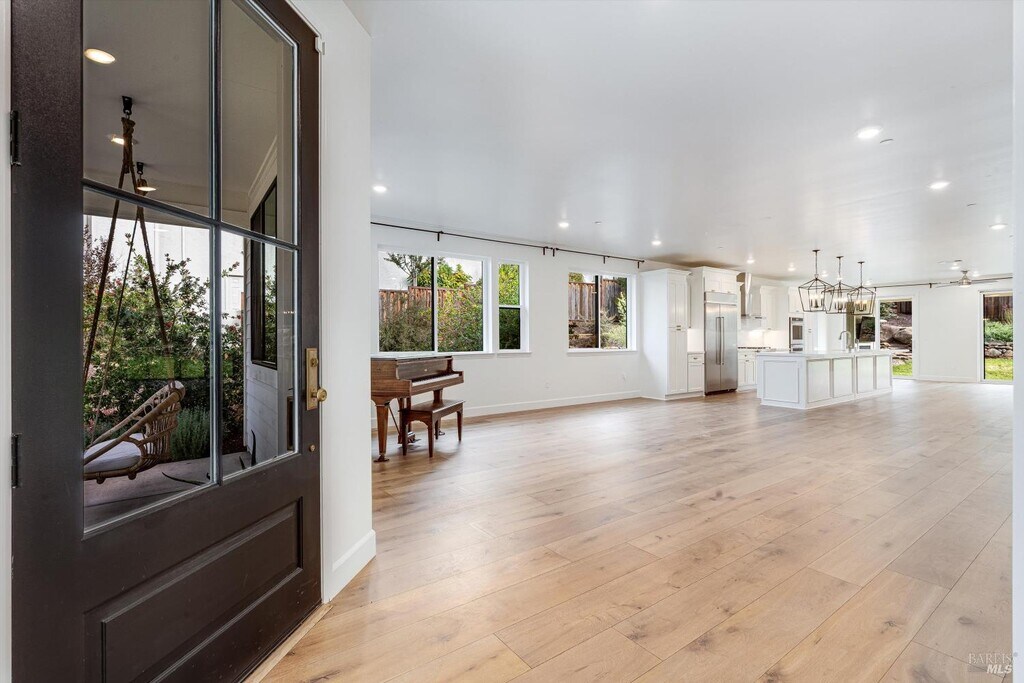 Tucked away on a quiet tree-lined cul de sac in Fountaingrove, walking distance to trails, parks, and Fountaingrove Golf and Athletic Club. This 4 bedroom 3 bathroom single level home is warm and inviting from the moment you enter the circle drive and approach the front door. You are greeted by the scent of lavender and roses, as well as a sweet porch swing. This bespoke home is bathed in natural light, featuring warm wood floors, an oversized island, chef inspired appliances, ample custom cabinetry, open concept floor plan, signature lighting and mirrors throughout. The primary bedroom and en-suite includes dual vanity, soaking tub, separate shower, private water closet, and custom wardrobe closet, all with luxe finishes. Not to be missed, a covered veranda running the width of the home, with an outdoor television suited for movie night or the big game. Home has smart features, tesla car charger, as well as solar. MLS#325096036