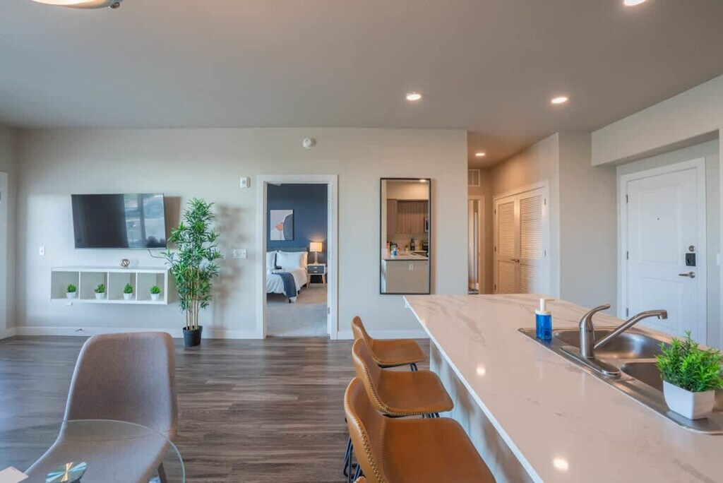 Settle into this cozy 1-bedroom apartment located right in the heart of Downtown Tempe. With easy access to highly rated restaurants, local food spots, historic places, and popular sites, everything is within your reach. After a day of excitement, relax and rest in this wonderful place, ready for your next Tempe adventure. This apartment offers a socially and environmentally conscious living environment with top-notch customer service and unparalleled amenities. The living space features an innovative open-concept design that blends the living and dining areas with the kitchen, creating a modern and sleek living experience. The living room is ideal for relaxing and enjoying the company of friends and family while watching a good movie or show on the 4K 55" HDR Smart TV. The fully equipped kitchen allows you to easily prepare your favorite meals, featuring a microwave, stove, oven, refrigerator/freezer, dishwasher, toaster, coffee maker with coffee essentials, and more. Parking is available on the premises, with instructions provided at check-in. For units that permit pets, an additional cleaning fee is required per pet: $25 per night for 1-7 nights, $200 for 8-29 nights, and $300 for 30+ nights. There is a 2 pet maximum and only cats and dogs are allowed. If pets are brought without prior notification, a $500 fee will be imposed. Welcome to the vibrant neighborhood of Tempe, where the essence of Arizona living comes to life. Nestled in the heart of Tempe, this area combines local charm with modern convenience. Enjoy a leisurely stroll to nearby Mill Avenue, known for its eclectic mix of shops, cafes, and cultural hotspots. For nature enthusiasts, the nearby Kiwanis Park offers a serene escape with sprawling green spaces, lakeside trails, and recreational facilities. This neighborhood is also conveniently located near Arizona State University, making it an ideal spot for visiting parents, prospective students, or those attending events on campus. With easy access to major transportation routes, including the nearby US-60, exploring the greater Phoenix area is a breeze. Guest verification is required, including providing a copy of your official government-issued photo ID and confirming your contact information. All guests must sign a rental usage agreement. Quiet hours are between 10pm and 8am every day. A strict no-party policy is enforced, with a $100 fine per unauthorized guest and a $500 fine for any signs of smoking. Noise monitors are installed to measure noise levels, and tampering with them will result in a fee. Early check-in/check-out may be accommodated at a fee of $25 per hour, with a $500 late check-out fee if not arranged in advance. The bedroom includes a queen-size bed with pillows, linens, and sheets, as well as an office desk and chair, making it ideal for remote work. A laptop computer is not included. [SI]