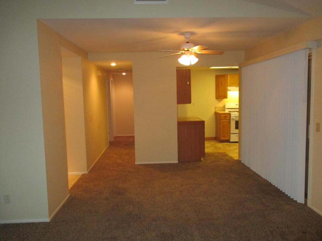 HOUSE in 55+ Senior Community of Seven Hills. NEW Carpet and paint. Pets negotiable. ONE YEAR LEASE. Living room with vaulted ceiling and corner fireplace. NEWER appliances including refrigerator. Ceiling fan in dining area. Covered patio. Laundry in garage with utility sink. GARDENER INCLUDED. Two car garage with opener. Easy care yard on corner lot.