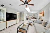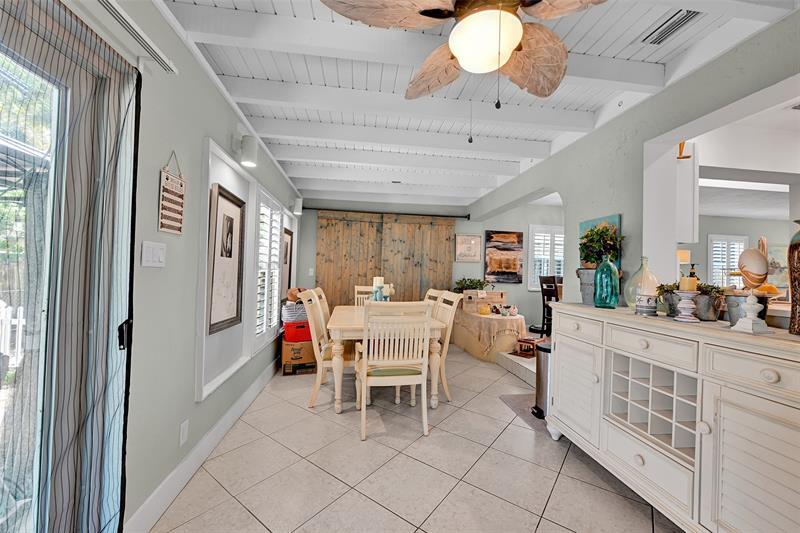 Charming 3-bedroom, 2-bath home tucked away in a quaint section of Fort Lauderdale. The tropical backyard retreat features a newer dock on a waterway with one fixed bridge and direct access to the ocean—perfect for boating or fishing enthusiasts. Inside, find an inviting layout with a bright living room featuring a skylight, a versatile Florida room, and a dining area that flows seamlessly into the gourmet kitchen. The kitchen boasts quartz countertops & an elegant design ideal for cooking & entertaining. Plantation shutters throughout add warmth & style. Additional highlights include: impact windows (except 1 door), washer & dryer, and a 2 car garage. This home combines tropical tranquility with modern upgrades—a true waterfront lifestyle just minutes from all Fort Lauderdale has to offer