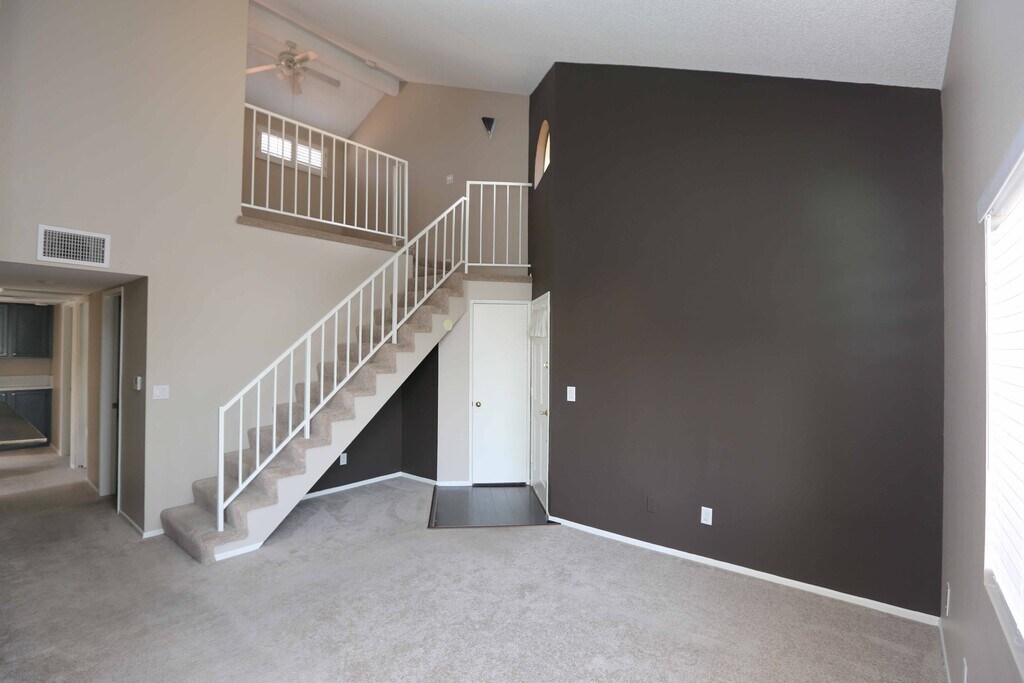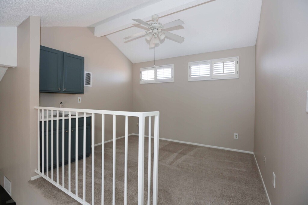 UPGRADED END UNIT, 3+2+LOFT IN THE GATED SIERRA GLEN COMMUNITY!!! Light and bright open floor plan with vaulted ceilings. The spacious living room offers a cozy fireplace to enjoy on those cold winter nights. The dining area has plenty of room and leads to the balcony, offering an amazing view for sitting, relaxing, and enjoying. The kitchen offers Corian counters and includes stainless steel appliances and a refrigerator. Loft area can be used as an office, game room, etc and offers a ceiling fan and sink/bar area. Full size washer and dryer are included. The garage has Tandem parking for two cars. Community offers a pool area to enoy during summer. Unit is located just minutes from FWY, shopping and more. Owner may consider pets. AVAILABLE NOW!! Gated Community with Pool area.