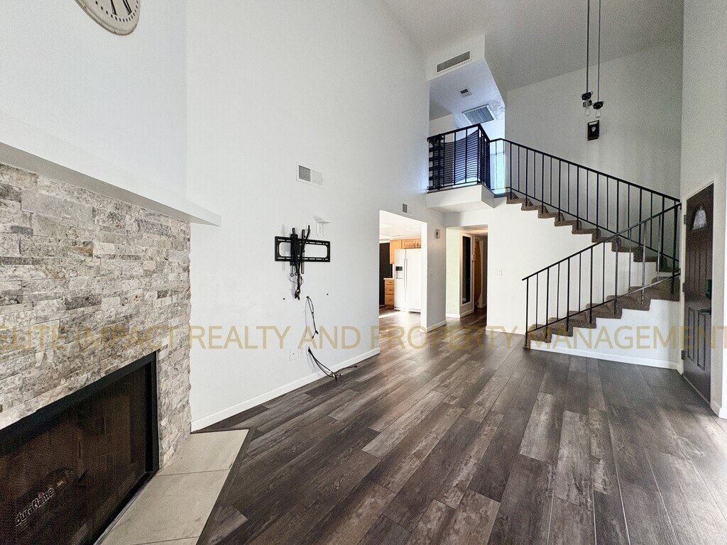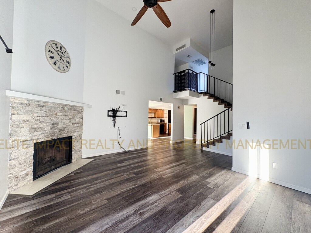 Don't miss out on this one! Gorgeous 3bed/2.5bath in the quiet tucked away Pantano Townhome community. This home has it all with airy open living area with 17' ceilings and fire place to cozy up around during cool evenings. Spacious kitchen with plenty of cabinet and counter space and dining area. Split bedroom floor plan with one bedroom downstairs and two upstairs. Guest bedrooms have their own private patios! Primary suite is complete with large walk in closet and gorgeous bathroom with a walk-in shower! Back yard includes patio, and low maintenance gravel. Washer and Dryer included as convenience. Two car garage! Home is located close to the community swimming pool, tennis and basketball courts. Pet Friendly! Hurry before it's gone! Call/text or email