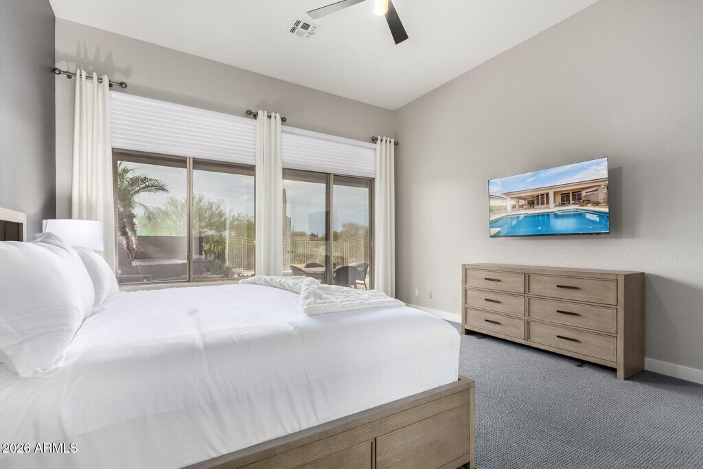 Grayhawk Golf HOME Vacation Paradise! This luxury Grayhawk Golf Course RENTAL home offers stunning golf,sunset,and mountain views. The 3 bedroom split floor plan provides exceptional privacy,featuring two King bedroom suites,each with their own private en-suite bathroom and walk-in closets; A third Queen bedroom and full bathroom,an abundance of natural light with two entertainment areas for a luxurious & relaxable stay. Notable amenities include a private heated pool,spa,BBQ,pool table and an additional community pool,spa,and BBQ area as well as basketball and tennis courts. Located within the prestigious guard-gated community of Talon Retreat at Grayhawk,this exceptional property is within walking distance to the Grayhawk golf club while offering access to miles of paths f walking,running,biking,and outdoor enjoyment. The prime Scottsdale,Arizona location is just minutes from some of North Scottsdale's most popular attractions and conveniences such as Isabella's Kitchen,Market Street at DC Ranch,Scottsdale Quarter,Kierland Commons,Fry's Grocery and Shopping Center,Starbucks Coffee along with a variety of local high-end dining,shopping,and entertainment options. The fully equipped kitchen,open-concept living room,and dining area take full advantage of the spectacular views. The primary suite overlooks the golf course and features a king-size bed with luxury linens,cozy blankets and pillows,a flat-screen TV,a walk-in closet,and a private en-suite bathroom with dual vanities,a seamless glass shower,and a soaking tub. The secondary king bedroom suite offers luxury linens,a flat-screen TV,a walk-in closet,and a private en-suite bathroom with dual vanities and a seamless glass shower. The third bedroom includes a queen bed and a flat-screen TV,with access to a guest bathroom featuring a vanity and a bathtub/shower combination. This luxury golf home vacation rental also provides a dedicated laundry room and attached two-car garage. You are within walking distance to Grayhawk Golf Club,Isabella's Kitchen,Starbucks,and DC Ranch Market Street. Just a short drive away is TPC Scottsdale,host of the WM Phoenix Open,along with popular destinations such as Kierland Commons,Scottsdale Quarter,WestWorld (home to the annual Barrett-Jackson Car Auction and Arabian Horse Show),Salt River Fields (Spring Training),and the world-renowned Mayo Clinic. The home also offers convenient access to the Loop 101 and Loop 51 freeways for easy travel throughout Scottsdale and the greater Phoenix area. Talon Retreat is a 24-hour guard-gated community offering you,your family,and friends a relaxing and memorable getaway. Additional amenities include the Monterey community pool,spa,and BBQ area,conveniently located across the street from the basketball and tennis court.