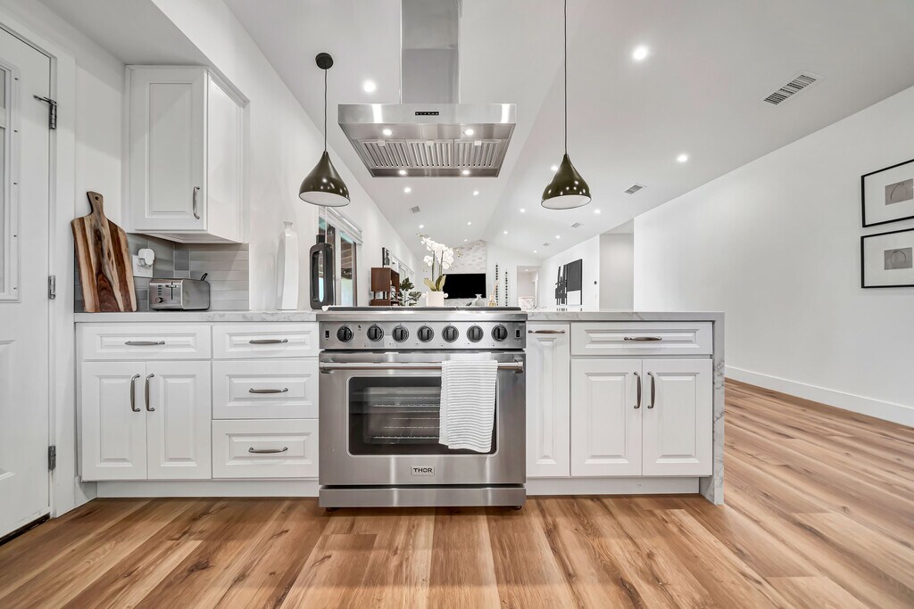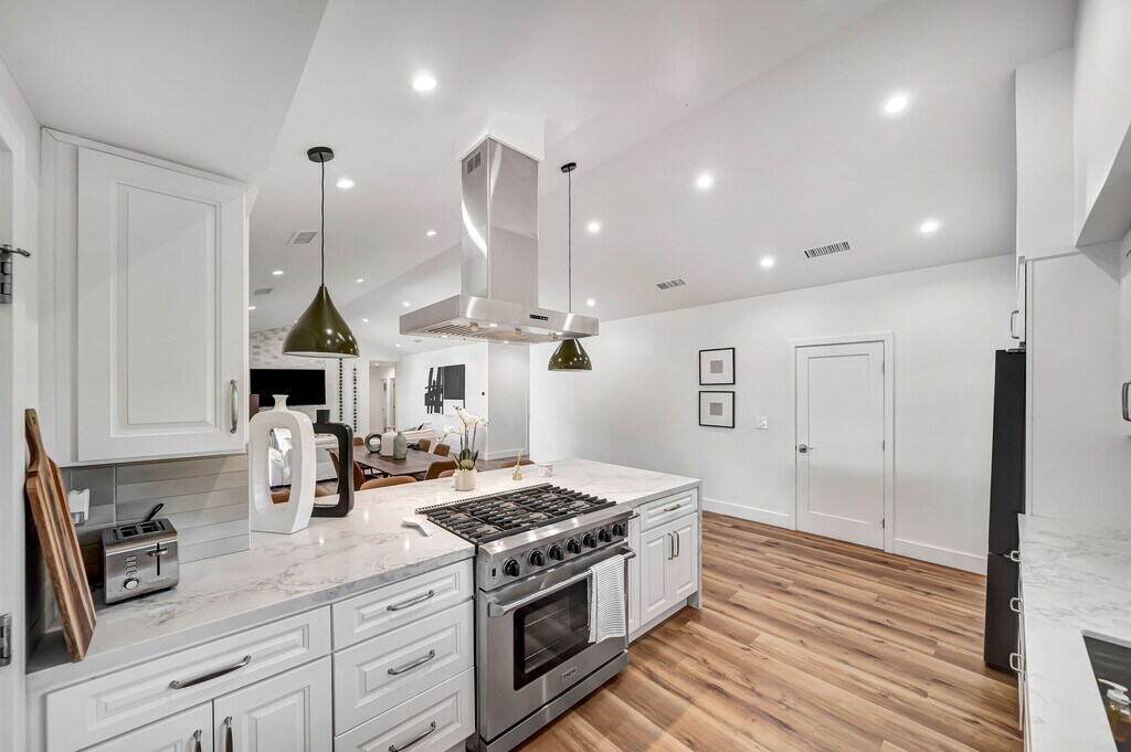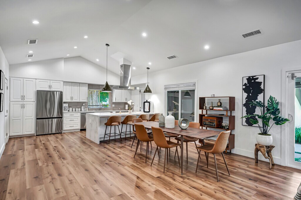 Stunning, fully remodeled, contemporary home featuring 4 bedrooms and 4.5 bathrooms, situated south of the boulevard. The master suite boasts a king-size bed and an en-suite shower, while the additional bedrooms offer comfortable queen-size beds. The spacious living room invites relaxation with its plush couches, perfect for movie nights on the large flat-screen TV. Prepare meals in the chef's kitchen, equipped with modern appliances and a generous island that provides ample counter space. Step into the entertainer's paradise of a 10,000-square-foot backyard, complete with a modern pool and hot tub, all surrounded by lush greenery. An oversized detached two-car garage offers plenty of storage. Located on the border of Woodland Hills and Tarzana, this home is within walking distance of shops and restaurants. It's move-in ready, complete with all appliances, including a washer and dryer. Please be aware that this listing is available unfurnished for a minimum lease term of one year. If you are interested in renting the house furnished, there will be an additional monthly charge, or we can discuss the option of purchasing the furniture. If you're interested in renting our home for a period shorter than 12 months, please reach out to us for pricing details.
