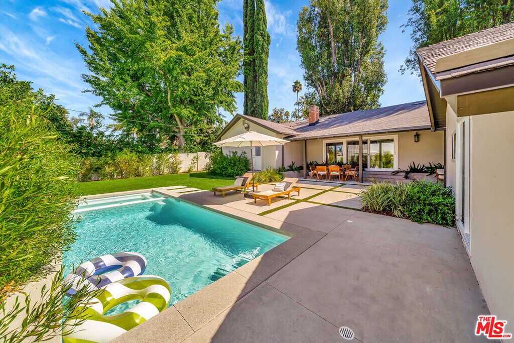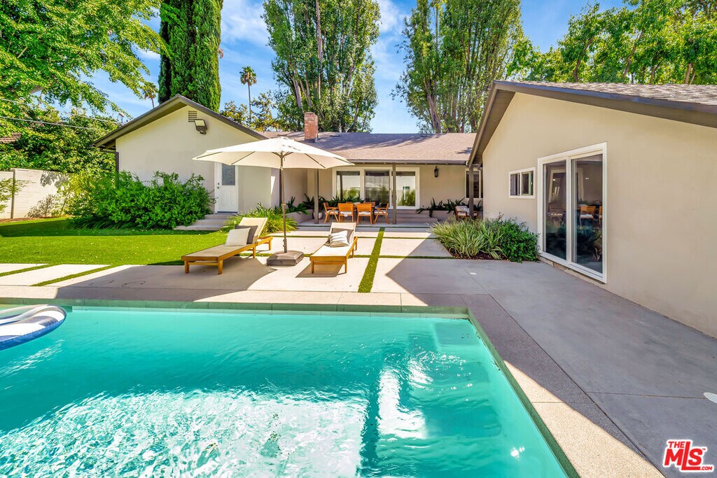 Fully remodeled contemporary 4BD/4.5BA home located south of the boulevard on the Woodland Hills/Tarzana border. This bright and spacious property features an open layout, a chef's kitchen with modern appliances and a large island, and a comfortable living room with a large flat-screen TV. The primary suite includes a king bed and private en-suite bathroom with a walk-in shower. Additional bedrooms feature queen beds and ample space. Enjoy a 10,000 sq. ft. private backyard with a modern pool, hot tub, and lush landscaping perfect for relaxing or entertaining. The home also includes an oversized detached two-car garage and all appliances, including washer and dryer. Prime walkable location near shops, restaurants, and everyday conveniences. MLS# 26663455