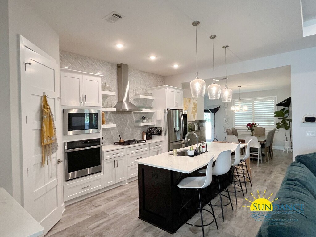 Located in the gated community of La Fontaine in Navarre, this beautifully upgraded 4-bedroom, 3-bathroom home offers a 2-car automatic garage with driveway parking, along with exceptional comfort, efficiency, and lifestyle perks, including deeded water and beach access as well as neighborhood sidewalks. The home is equipped with SOLAR PANELS that produce up to 17 MWh, offering an estimated electricity savings of $2,550.00 to $2,890.00 per year. The home welcomes you with a thoughtfully designed split-bedroom floor plan that provides privacy between the main living areas and bedrooms, creating an ideal layout for both everyday living and entertaining. The inviting living room features hardwood and tile flooring, tray ceilings, and TV mounts (as-is). LIVE OAK FIBER INTERNET is available, offering download speeds up to 1,000 GB with an estimated monthly cost of $89.00; service is to be maintained at the renter’s expense. The spacious kitchen is designed for both function and gathering, featuring sleek granite countertops, stainless steel appliances, and a convenient breakfast bar. It also includes a pantry and a refrigerator with water and ice dispenser, plus a bonus craft ice maker in the freezer provided “as-is”. A formal dining room conveniently located just off the kitchen, along with a versatile bonus room that can be used as a home office, study, or additional living space, offering flexibility for everyday needs and entertaining. The spacious primary suite features a tray ceiling, a walk-in closet, a stall shower, dual vanities, and a relaxing garden tub. Three generously sized bedrooms and two full bathrooms offer ample space and comfort for family or guests. A large laundry room with washer and dryer hookups completes the interior of this home. Enjoy outdoor living with an open porch, screened patio, and a large fully fenced backyard with a backyard water mister (AS-IS). Bonus Services Included in Monthly Rent: Lawn fertilization and pest control services are included and provided by Lawn Doctor. In addition, residents receive a complimentary HVAC filters delivered directly to your home approximately every 30 days. This service helps maintain system efficiency, may reduce utility costs by an estimated 5–15%, and promotes a cleaner, healthier living environment. HOA rules and regulations apply. Pets are accepted with a non-refundable $250 per pet plus a $50 admin fee (subject to owner approval). No smoking. In addition to the rental amount, all Sundance Rental Management residents are enrolled in the Resident Benefits Package (RBP) for $25.00/month which includes liability insurance, credit building to help boost the resident’s credit score with timely rent payments, and much more! The benefits can be found on our website under Tenant FAQ.