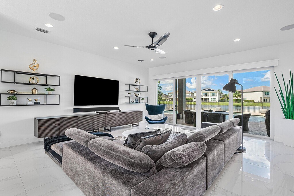 Fully Furnished Waterfront Estate - Largest Lot in BerkeleyPanoramic 250-ft lake view 50-ft salt-water pool High-tech remote-work studioExperience luxury living at its finest in this one-of-a-kind Riverside Model, set on Berkeley's largest, pie-shaped cul-de-sac lot with an unobstructed 250-ft panoramic lake view. From the double-height foyer with 24-ft ceilings and grand staircase crafted for open-plan family living, remote working and effortless entertaining.Fully furnished and just under 5,800 SF, the residence offers 5 bedrooms - 5.5 baths, including a serene primary suite with a spa-inspired bath and custom closets. The chef's kitchen--oversized island, premium appliances, and a sunny breakfast nook--flows into open living/dining spaces that frame the water.