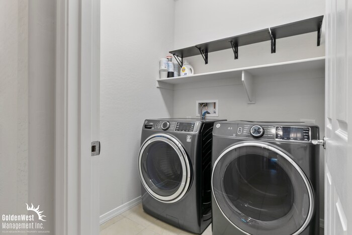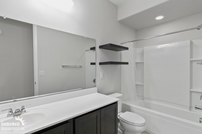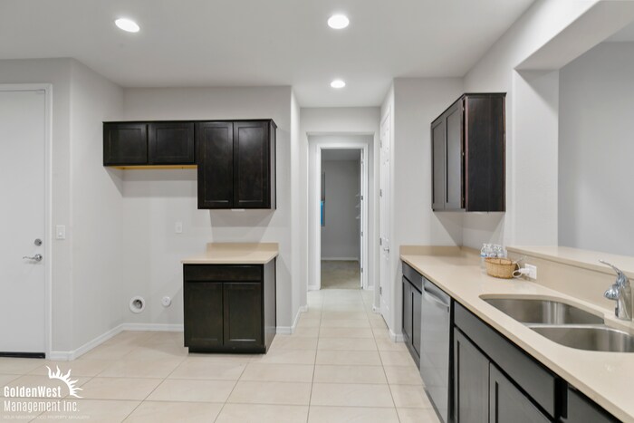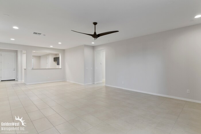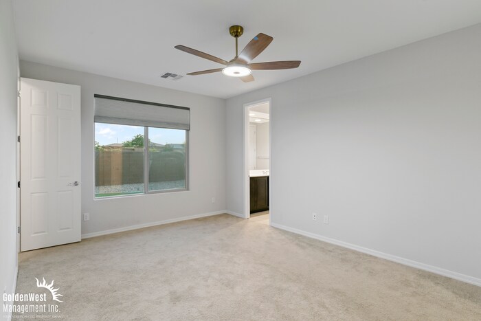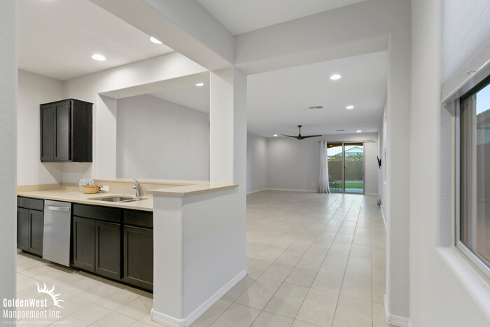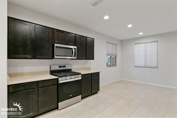 Modern 3Bdm 2Ba Litchfield Park Home with Stylish Upgrades! Nestled in a quiet neighborhood, this stunning home offers a bright and inviting layout with modern finishes throughout. The spacious main living area features neutral tile flooring, recessed lighting, and large windows that bring in plenty of natural light, creating an open and comfortable atmosphere perfect for everyday living. The kitchen showcases rich cabinetry, ample counter space, stainless steel appliances, and a functional layout ideal for cooking and entertaining. The primary suite offers a relaxing retreat with soft carpet, a generous walk-in closet, and a well-appointed private bathroom with dual sinks and a glass-enclosed shower. Additional highlights include a separate laundry room with full-size washer and dryer, well-sized secondary rooms, and thoughtful touches throughout the home. The backyard is beautifully designed with low-maintenance landscaping, a paved patio area, and a lush artificial turf space perfect for outdoor enjoyment and Arizona sunsets.. The property also includes a car garage for added convenience and storage. Located in a desirable area close to parks, dining, and convenient freeway access, this home delivers comfort, style, and an excellent lifestyle opportunity. Tenant pays all utilities. Pets with approval via process. This property allows self guided viewing without an appointment. Contact for details.