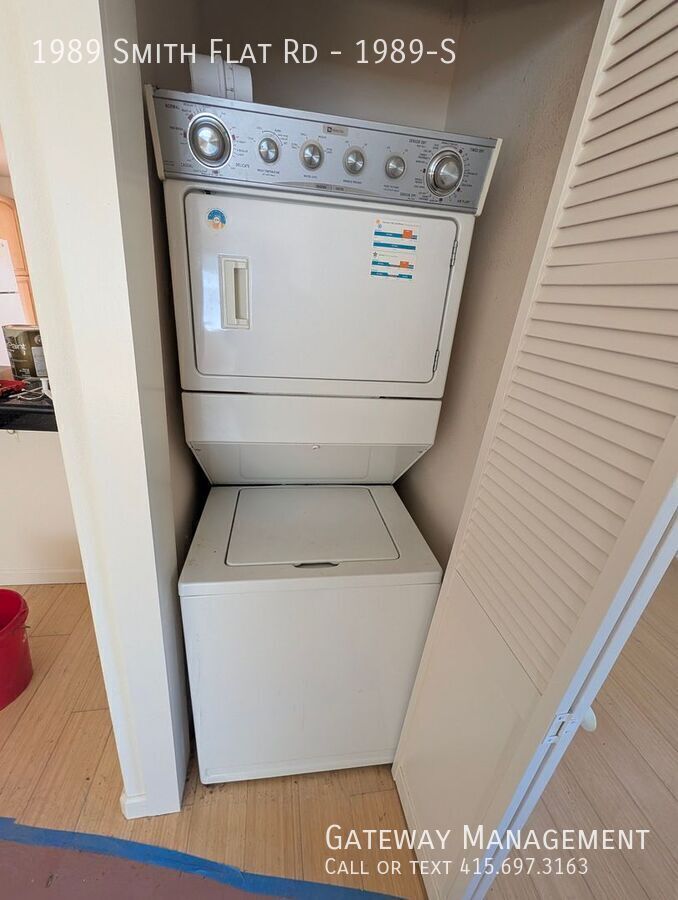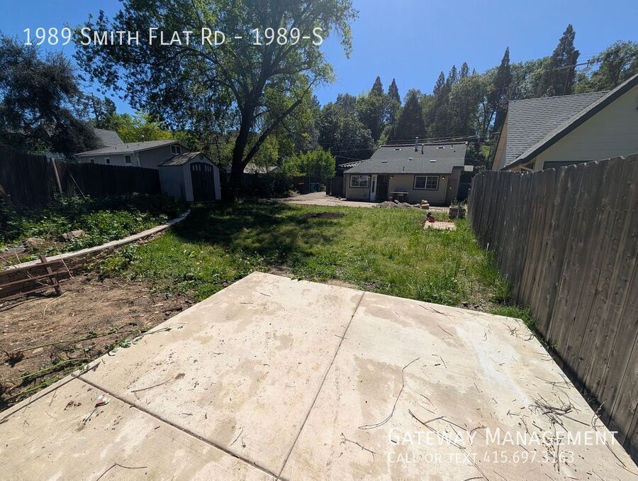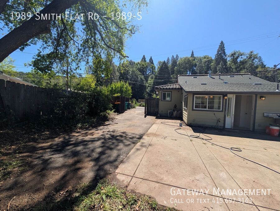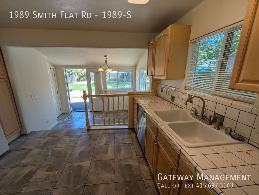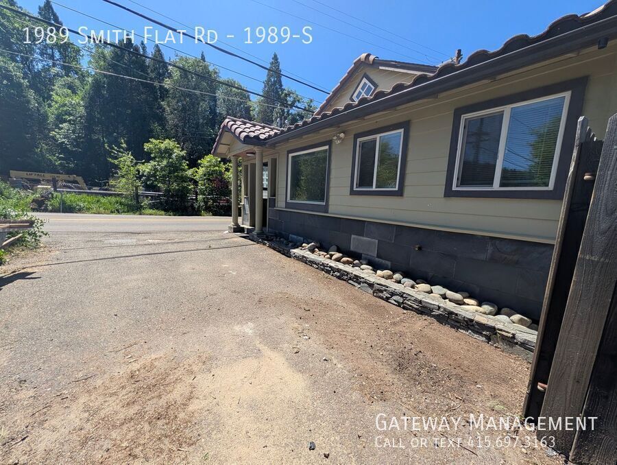 Large three bedroom with a great room connecting large living room and kitchen with a dining room overlooking very large yard Modern newer tiled large kitchen with lots of counter and cabinet space. Double sink and gas stove. Glass rack, refrigerator and tiled floor Full bathroom with stone and granite/ All three bedroom have nice closets but are medium sized or small Very large yard features a garden shed, large patio, outdoor sink, additional parking, and a recently landscaped connection to a seasonal creek. Unit has its own stacked washer/dryer. There is a small basement as well MORE INFO & SHEDULE A SHOWING NEIGHBORHOOD: Live in the Sierra Foothills! Where the air is fresher, and history surrounds you. Smith flat is a valley surrounded by Oak forest and fields of grapes on the hillsides. The Starfield Winery.overlooks and exit 49 on highway 50 makes for easy access to el Dorado County Smith Flat is one of California's oldest communities known in the early days as being a settlement 3 miles from old town Placerville. This Carson Trail stagecoach stop marked the beginning of the ascent or end of the descent from the thousands who traveled to help found the State of California in the 1850s and 1860s. From 1852 on very rich surface diggings were found here in ancient gravel beds. Many tunnels were dug in the surrounding hills to locate more gold. One of the gold rush's richest mines has a preserved opening in the basement of Smith Flat House. This Blue Lead Mine extends all the way to the American River and has made Hangtown Creek which runs through old town Placerville a year round creek. This area became a prosperous mining camp as well. Ranching and logging kept the Smith’s Flat area going after the mines were shut down. Smith Flat Road became part of California's first state highway which was built in the 1890s connecting Placerville with Lake Tahoe. Old-timers recall when two other nearby locations competed with the Smith Flat House as drinking and dancing establishments. The Smith Flat House reopened in 2009 as just a healing center based in part on the owner's belief that a large crystal layer, deep below the ground, contained extraordinary healing properties. Today Smith Flat House is again popular as a community gathering space and event center as the exceptional eating establishment closed in early 2026 with the property going on the market TRANSIT: There is a local Placerville bus stop next door [More ] Smith Flat is easily accessed by Exit 49 off Highway 50 and connects to the wineries and Apple Hill [fresh farm to fork] visitor attractions along Carson Road via Jacquier Road. Smith Flat Road and Broadway offer a relatively flat connection to the downtown Placerville bell tower 3 miles downhill . Newtown Road connects to more rural communities of Pleasant Valley and Fair Play. This is also the exit used for the Placerville Airport. EL DORADO TRAIL is on our block and is a hiking / biking / equestrian trail which is over 30 miles long spanning through the Western Slope of El Dorado County on the former SP Railroad Line. This County trail within the old Michigan/California Railroad right-of-way originally served the old railroad ran from Placerville east through Smith Flat and up to Camino. The largest trailhead is located at Smith Flat with close access to a bridge over Highway 50 that allows trail users access to another 4 miles of trail of ascent into Camino where the forest is transformed into primarily evergreen trees better adapted to snow. A Lincoln Highway marker celebrating Smith Flat Road's role as part of California's first state highway can be found on the front of Smith Flat House. Water & Sewer