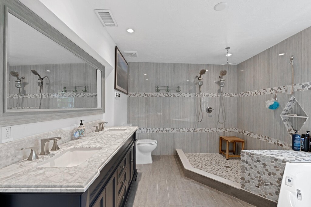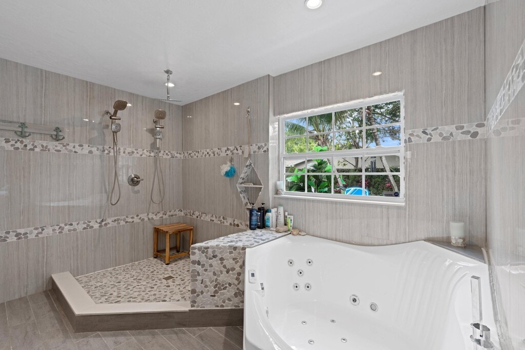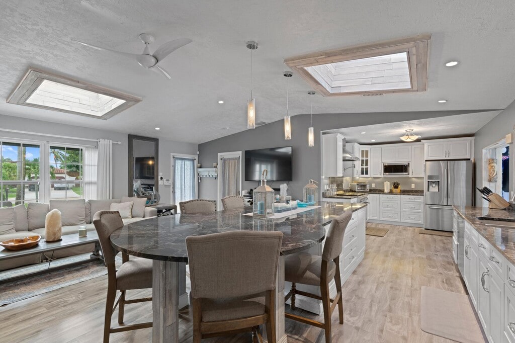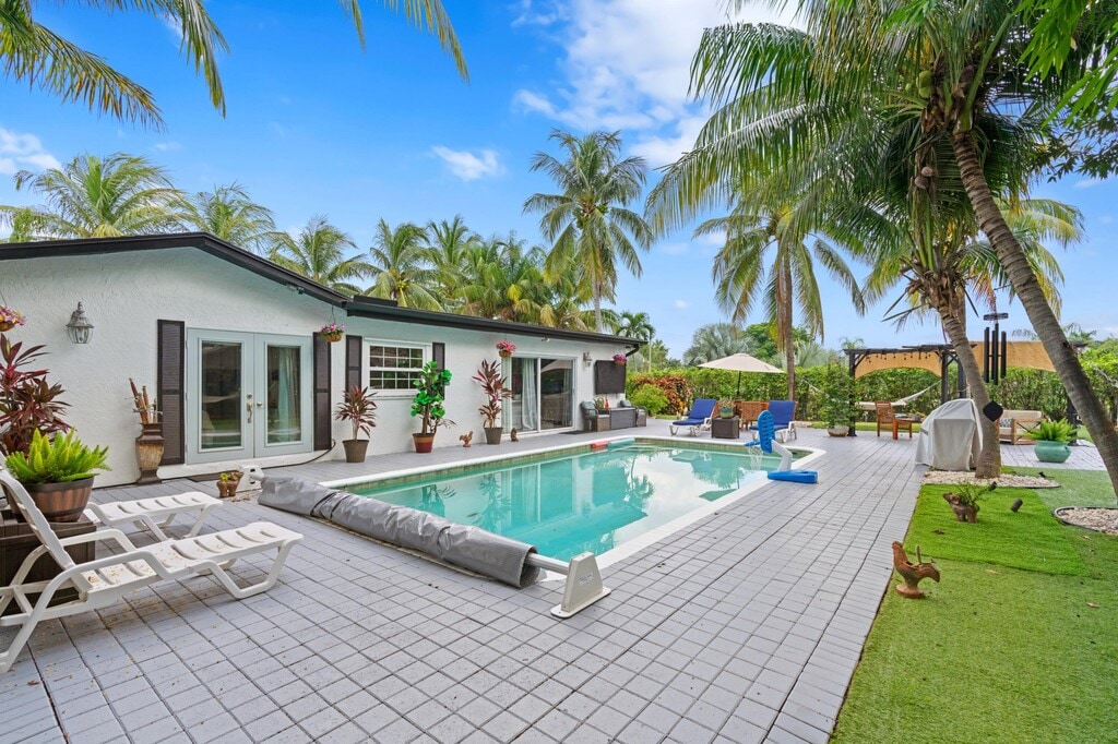Tropical Paradise Oasis! This Fully Furnished, Turnkey Single-Family in Desired Neighborhood of Hidden Valley! Dramatic Vaulted Ceilings, Skylights, Bright Open Split Floor Plan, Luxury Vinyl Floors & Recessed Lights! HUGE Stunning Updated Chef's Kitchen with Granite Counters, Breakfast Bar, Accent Lighting, 42' Cabinets, Wine Fridge & S/S Appliances! In Home Office! Immaculate Lush Fenced Backyard, Turf Grass, Landscape Lighting, Large Open Patio & Pergola, Custom HEATED Pool & Bocce Ball Court! Impressive Master Bedroom, Sitting Area, Barn Doors - Ensuite, Dual Sink Vanity, Jacuzzi Tub & Large Shower! In-Law Suite with Kitchen & W/D! 2 Sets of W/D! Bike to Beach & Park! Prime East Boca Location! A+ Schools! Minutes to Beach, Mizner Park, & Delray Beach!
