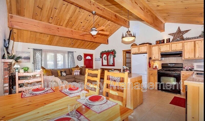 Welcome to 199 Oriole Dr., a beautifully upgraded cabin located in the highly desirable Eagle Point neighborhood of Big Bear Lake. Situated on a spacious, flat lot over 10,000 sq. ft., this charming home offers ample yard space with no rear neighbors, providing privacy and a peaceful setting. The Interior and Exterior Freshly painted. Inside, you'll find an inviting open floor plan. The cozy living room, complete with a fireplace, seamlessly connects to the dining area and kitchen, making it perfect for gatherings. The master bedroom features new wood floors, French doors that open to the backyard, and an updated en-suite bathroom with a stylish tile shower. There are two additional bedrooms. These bedrooms share a hallway bathroom that includes a jacuzzi tub and shower. The home has been thoughtfully upgraded with dual-pane windows, elegant tile in the kitchen, and beautiful hardwood floors throughout.. A new HVAC system ensures comfort year-round with heating and air conditioning. A tankless water heater provides endless hot water. The property also includes hookups for a washer and dryer. The light-filled kitchen opens to a serene and private backyard, offering stunning views of the surrounding trees. The land behind the property is protected as open space, ensuring a tranquil, natural setting that can't be developed. This home's prime location is just a short distance from ski slopes, the lake, the Village, and local hiking and biking trails. Nearby markets, restaurants, and shops in downtown Big Bear add to the convenience. While not formally ADA-compliant, the home is single-level and more accessible than most, though some doorways may be narrow for wider wheelchairs. It's a great option for those seeking a blend of comfort, style, and proximity to Big Bear's best attractions. If you have any questions regarding this rental home please email HELLO at MYSCOUTPM dot COM Due to the volume of calls we receive this is the fastest way to receive a response from our team. Please visit TENANT TURNER dot COM and search for the property address to move through our screening process to confirm qualifications. Upon successful screening you can schedule a time to view the property. Please be advised you need to meet the following criteria to be considered for tenancy: 1. Combined gross household income of 2.5 X's the rent. 2. Credit Score of at least 650 or higher 3. Complete one application per adult occupant. Applications that are missing documentation will not be considered 4. Make sure you qualify for the pet policy for the property for which you are applying 5. Applicants that are currently in bankruptcy that has not been discharged yet, or have an open tax lien for which you are not in a payment arrangement, will not be considered for tenancy (nor will an eviction within the last ten years). To apply, please follow this link to our Applications Team at FinDigs: We do not accept applications from Zillow or other third-party Sites. Applications must be submitted via our Website only to be considered.